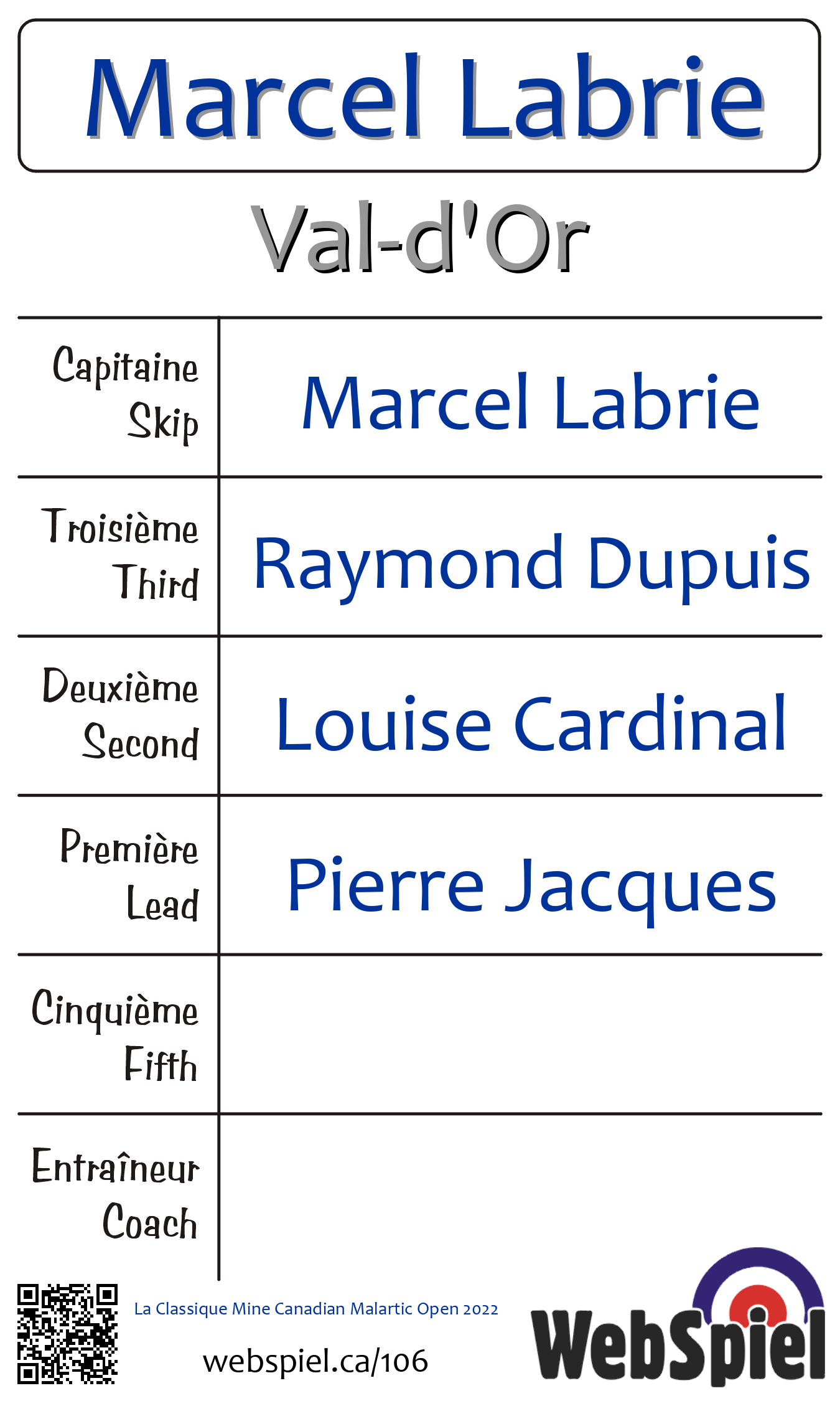 Friday, April 8th, 2022, at 6:00pm EDT Club de curling du Belvédère, Sheet 4 · D, Winner › A18, Loser › C02 | |||||||||