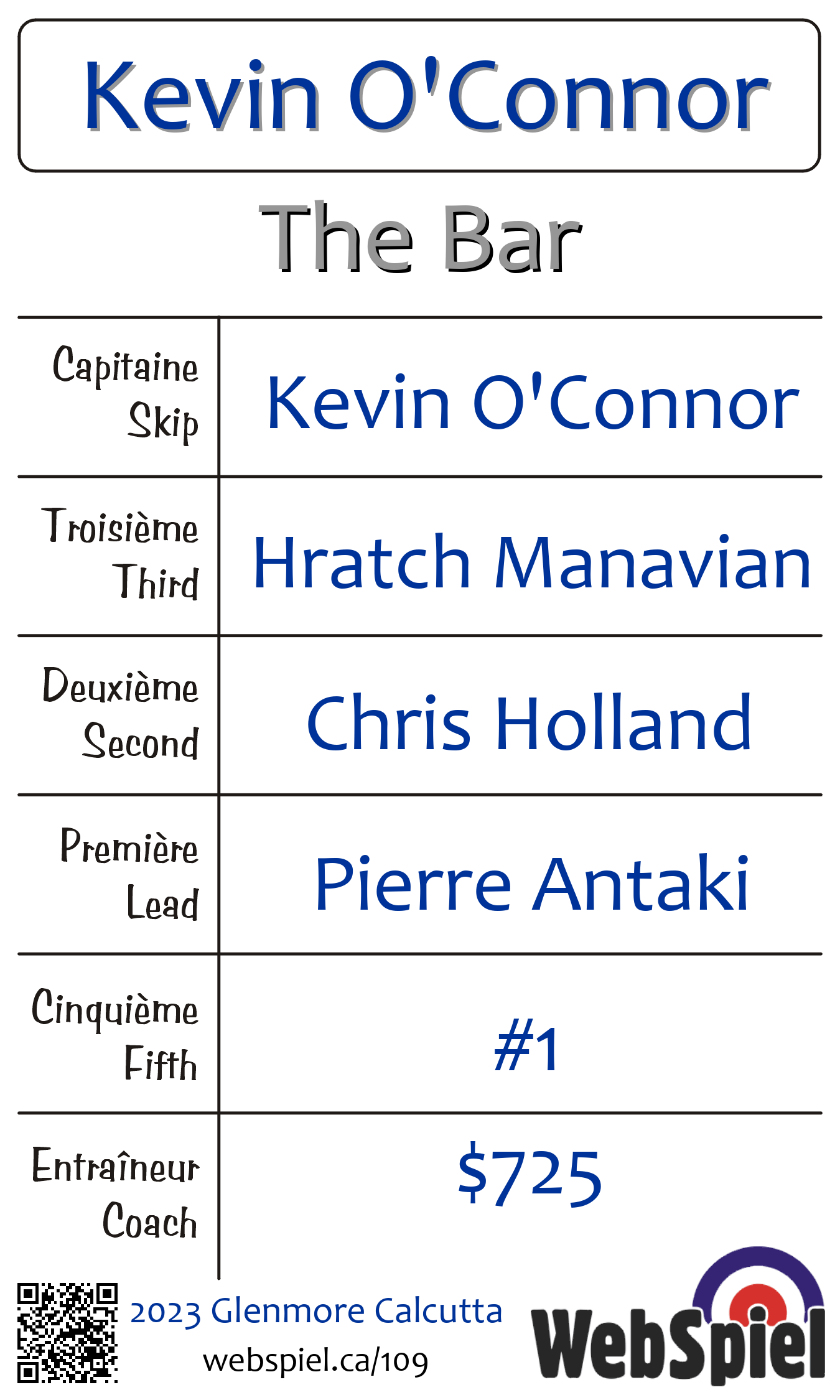 Saturday, February 4th, 2023, at 10:00am EST Glenmore Curling Club, Sheet 211 · A, Winner › B07, Loser › OUT | |||||||||