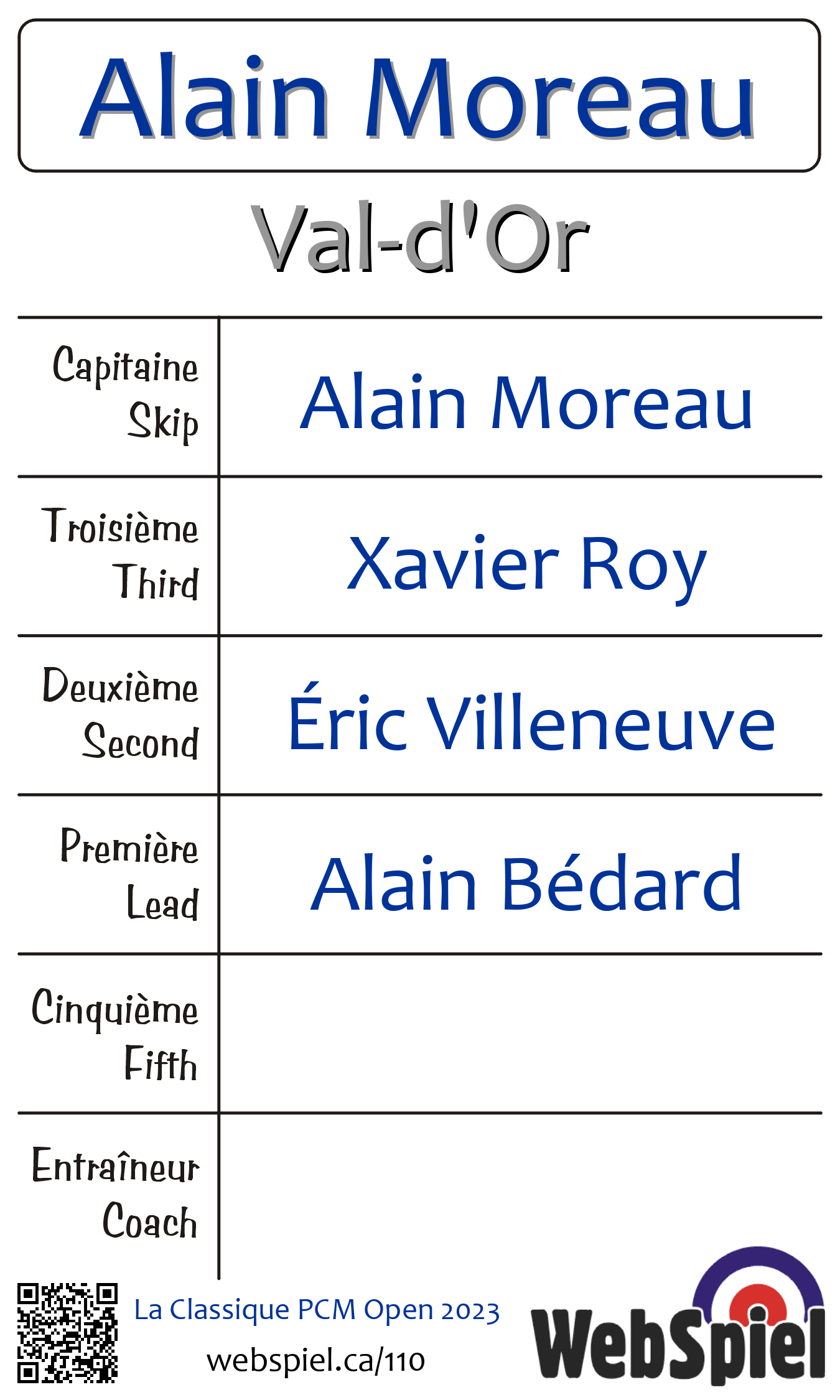 Saturday, February 18th, 2023, at 2:00pm EST Club de curling du Belvédère, Sheet 1 · A, Winner › A30, Loser › B04 | |||||||||