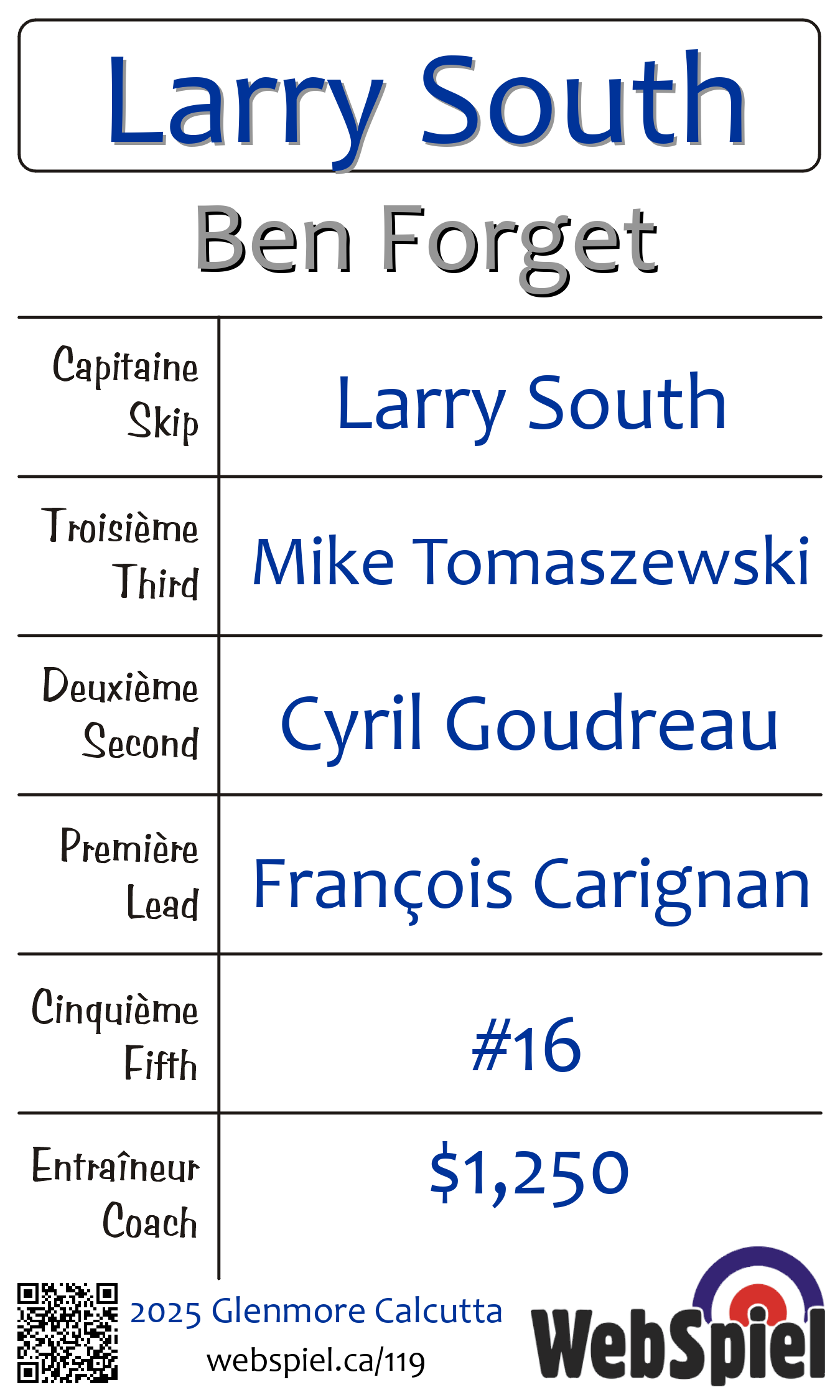 B FinalSaturday, February 8th, 2025, at 3:30pm EST Glenmore Curling Club, Sheet 213 · C | |||||||||