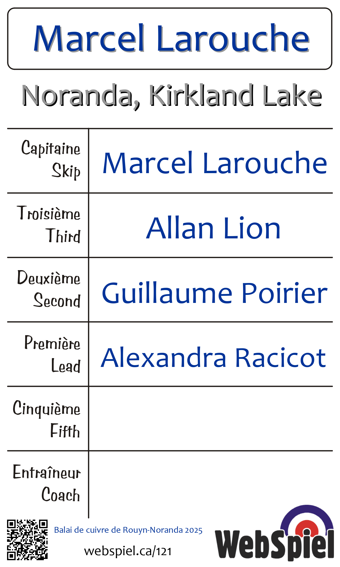 Saturday, March 1st, 2025, at 10:15am EST Club de curling Noranda, Sheet 1 · A, Winner › C15, Loser › D04 | |||||||||