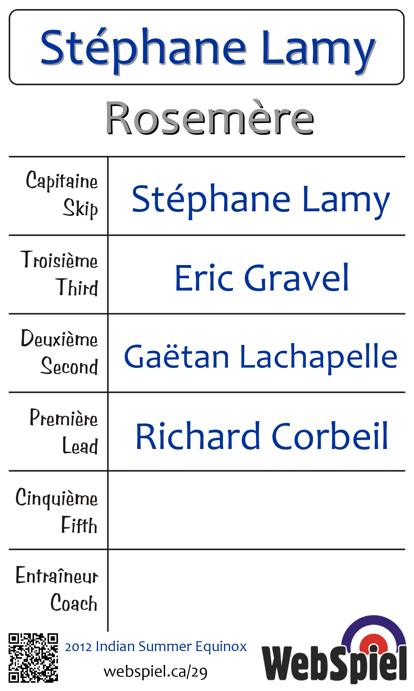 | Club | Rosemère Club de curling Rosemère 224 Grande Côte Rosemère, QC J7A 1H4 CANADA T: 450-437-1374 http://www.curlingrosemere.com/ 3 sheets |
