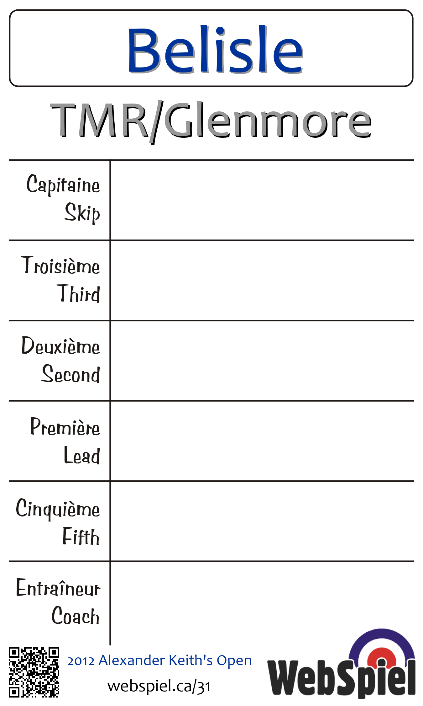Saturday, December 1st, 2012, at 5:30pm EST Baie d'Urfé Curling Club, Sheet 193 | |||||||||