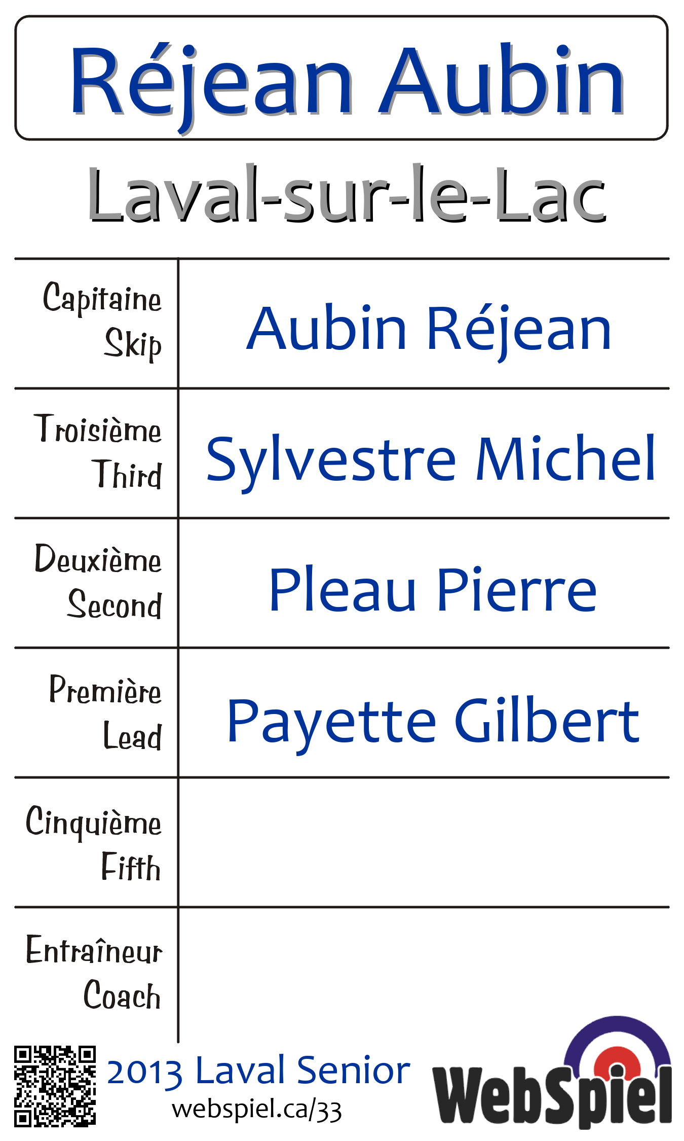 | Club | Laval-sur-le-Lac Club de curling Laval-sur-le-Lac 10 rue les Pins Laval-sur-le-Lac, QC H7R 1C7 CANADA T: 450-627-4791 F: 450-627-7511 http://www.curlinglaval.ca 3 sheets |