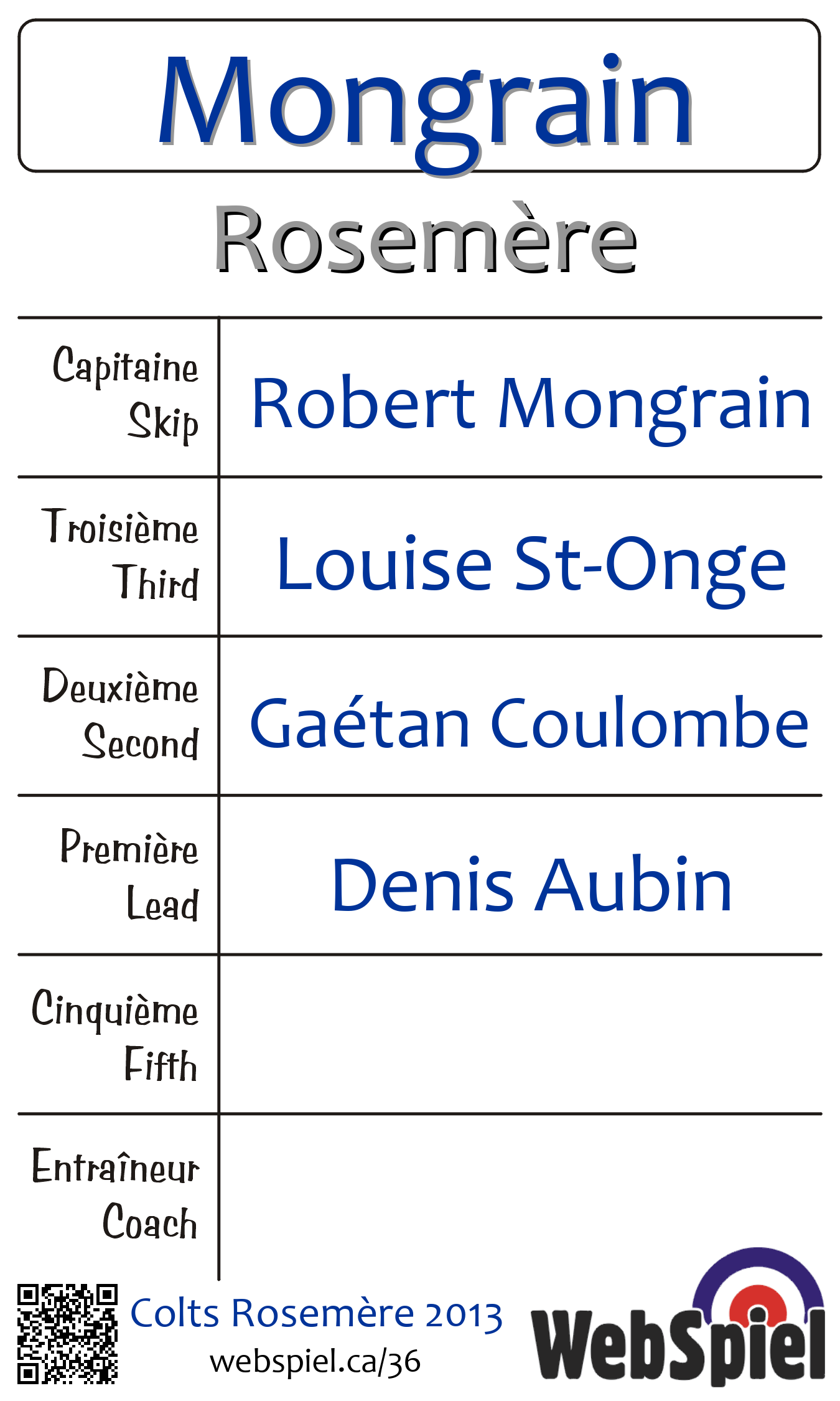| Skip | Robert Mongrain |