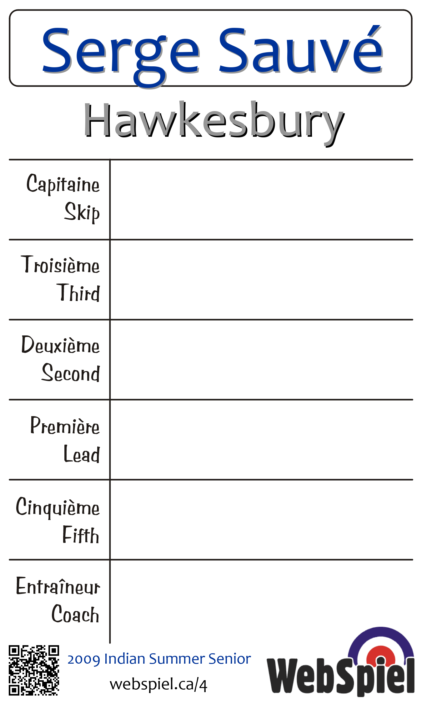 Saturday, October 10th, 2009, at 11:00am EDT Glenmore Curling Club, Sheet 211, Winner › A29, Loser › C15 | |||||||||