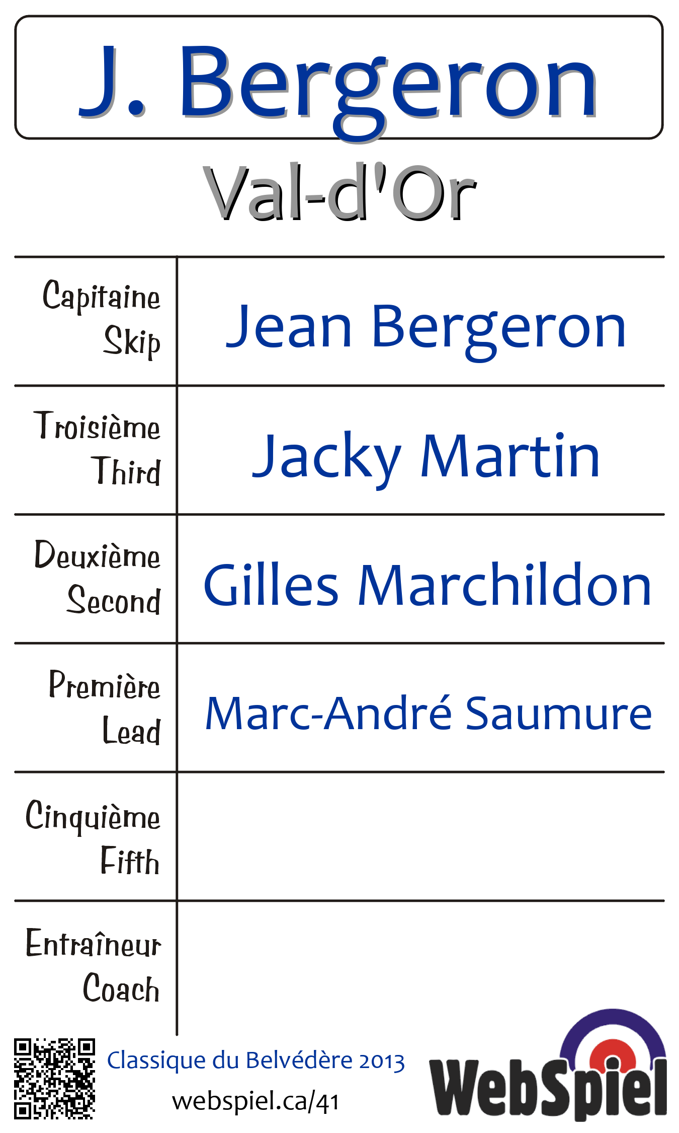 C Semi-FinalSunday, February 10th, 2013, at 11:30am EST Club de curling du Belvédère, Sheet 4 · D, Winner › C21, Loser › OUT | |||||||||