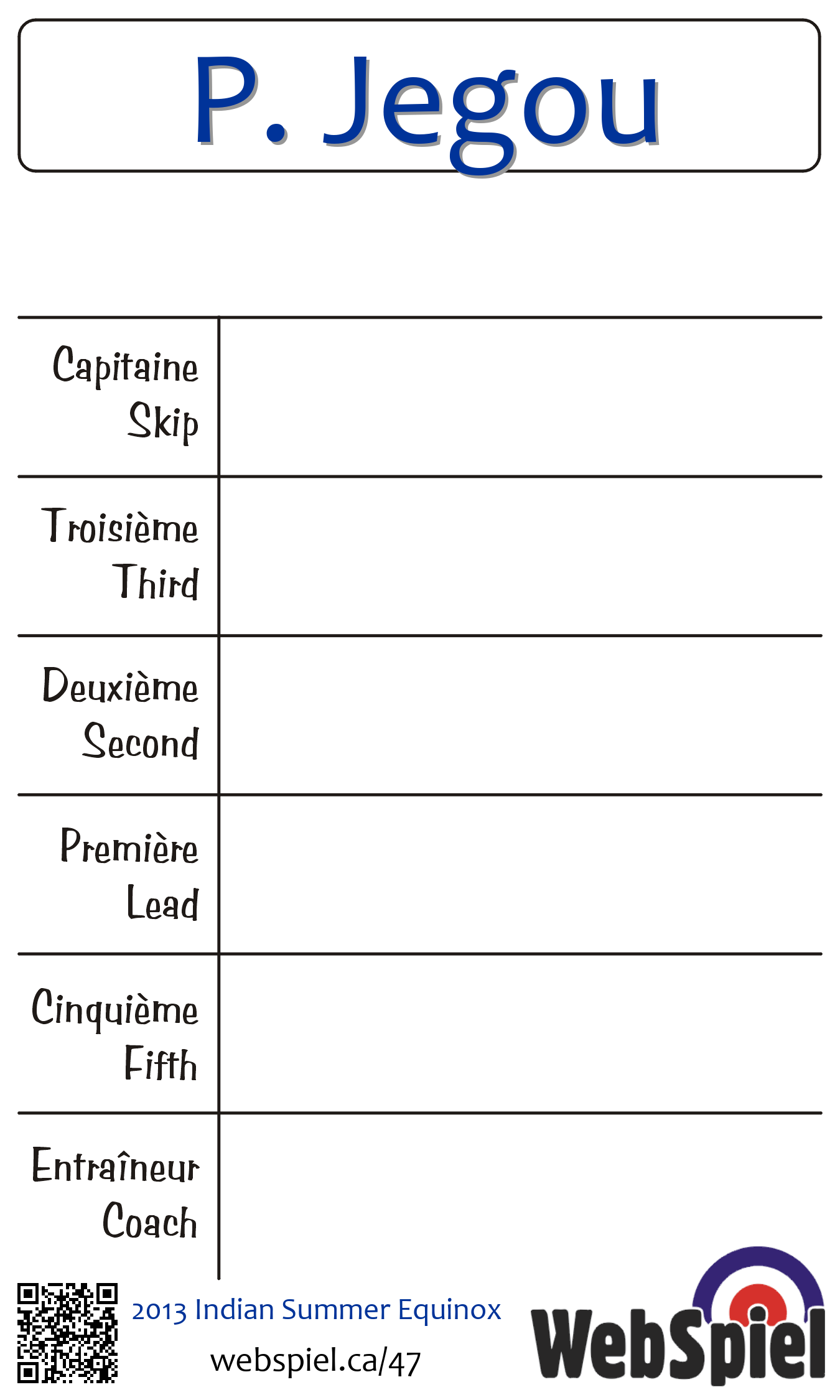 Thursday, October 3rd, 2013, at 7:00pm EDT Glenmore Curling Club, Sheet 211, Winner › A10, Loser › C03 | |||||||||