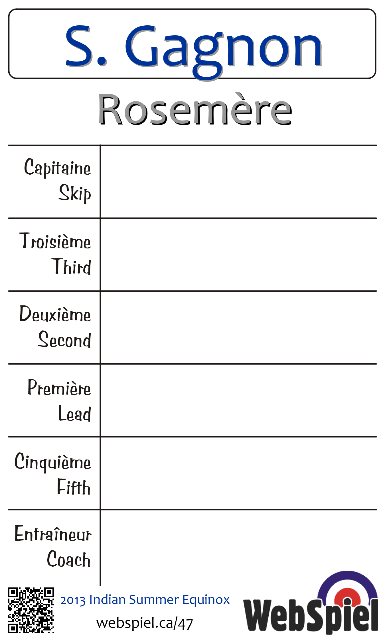 | Club | Rosemère Club de curling Rosemère 224 Grande Côte Rosemère, QC J7A 1H4 CANADA T: 450-437-1374 http://www.curlingrosemere.com/ 3 sheets |