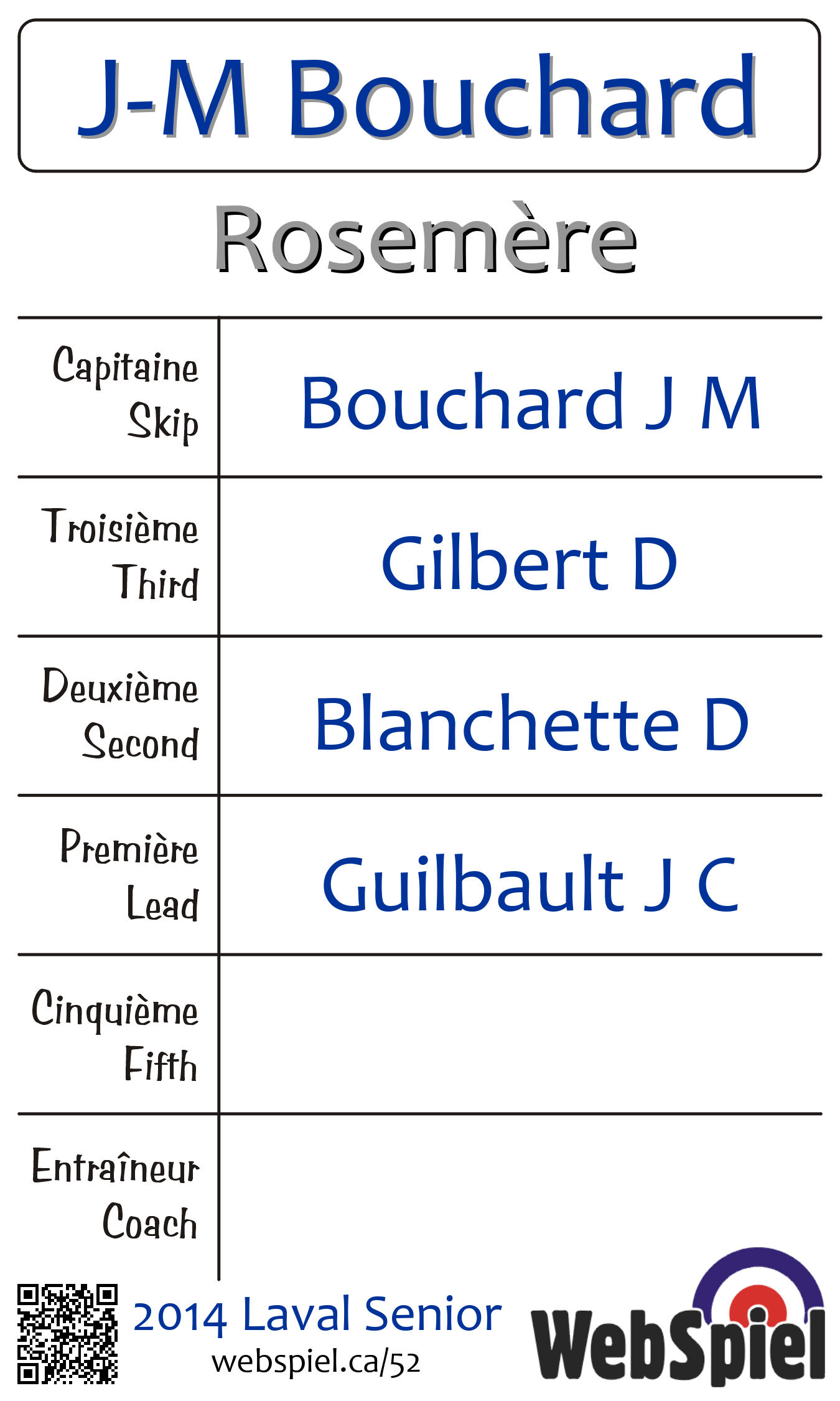 | Club | Rosemère Club de curling Rosemère 224 Grande Côte Rosemère, QC J7A 1H4 CANADA T: 450-437-1374 http://www.curlingrosemere.com/ 3 sheets |