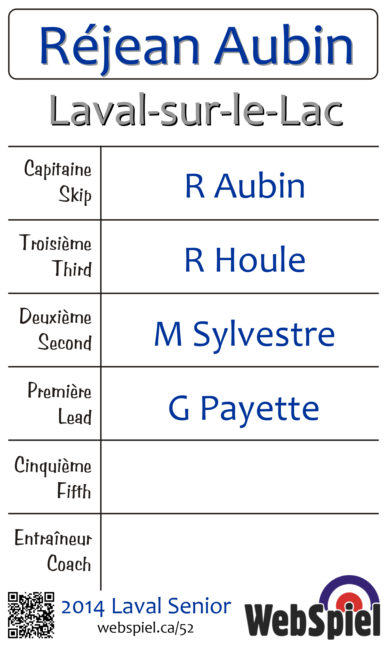 | Team | 22 - Réjean Aubin |