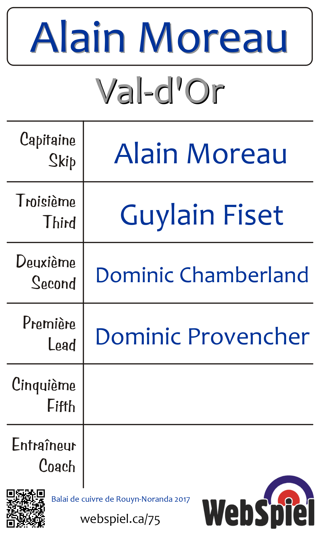 Sunday, March 12th, 2017, at 9:00am EDT Club de curling Noranda, Sheet 5 · E, Winner › B15, Loser › OUT | |||||||||