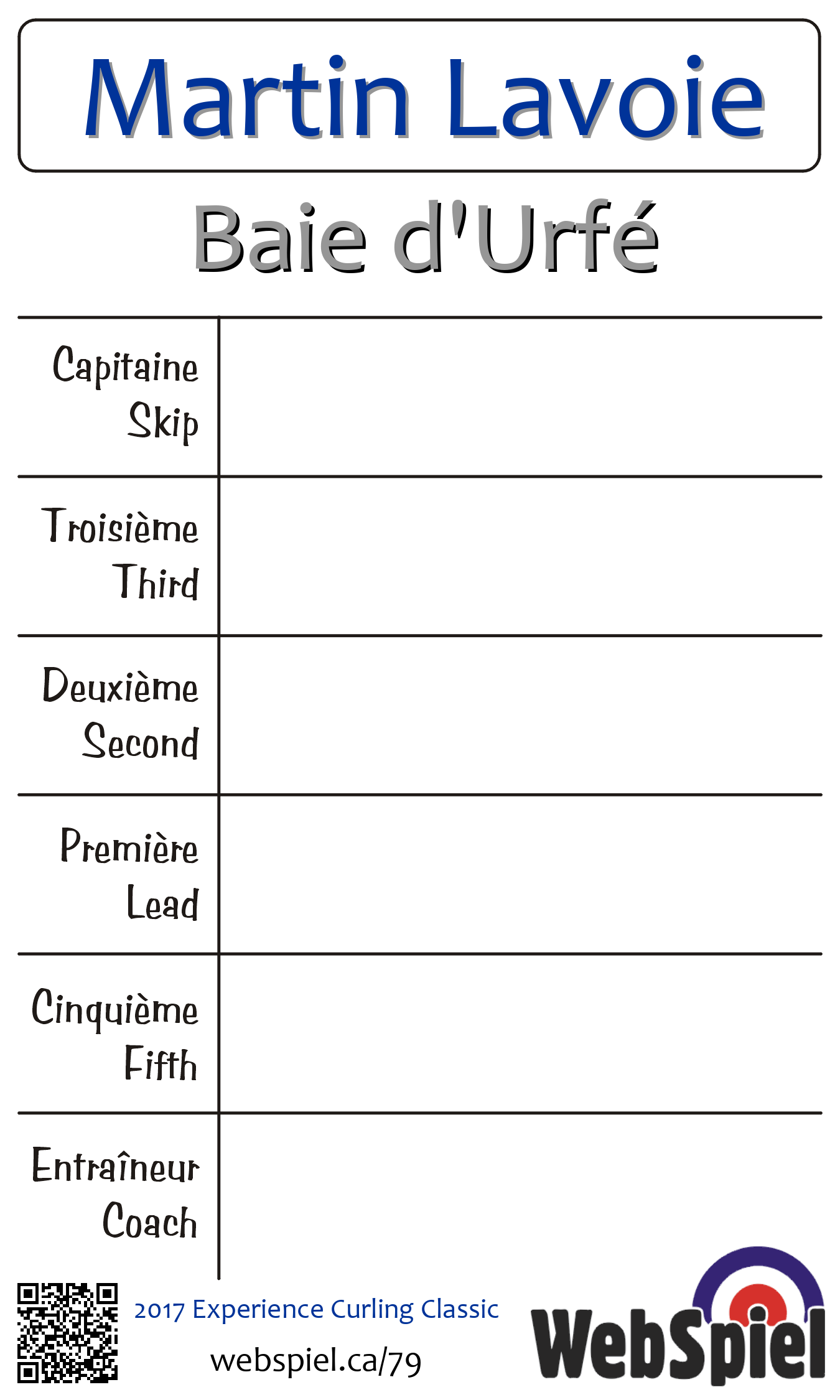 Saturday, November 11th, 2017, at 2:30pm EST Baie d'Urfé Curling Club, Sheet 193 | ||||||||||