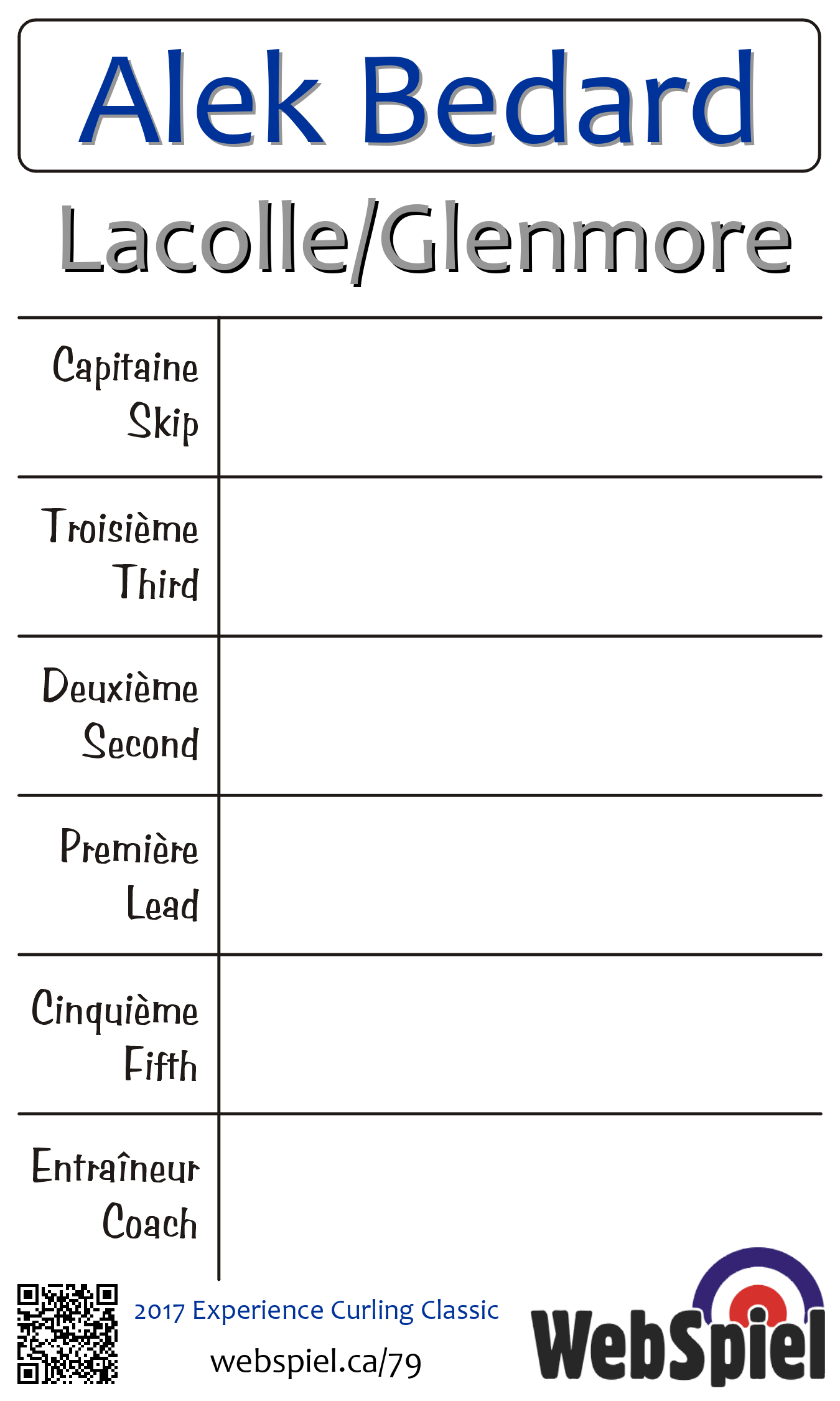 Friday, November 10th, 2017, at 9:00pm EST Baie d'Urfé Curling Club, Sheet 192 | |||||||||