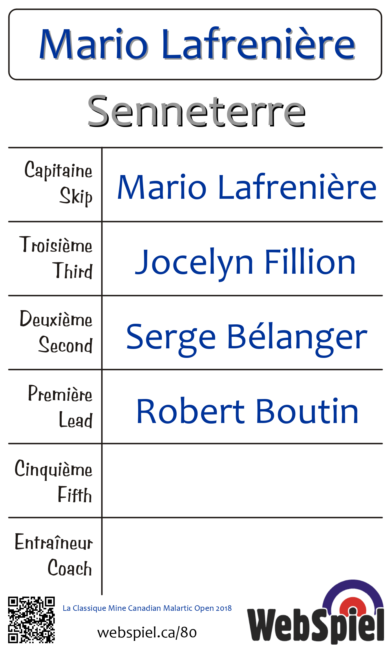 Sunday, February 4th, 2018, at 10:00am EST Club de curling du Belvédère, Sheet 2 · B, Winner › C18, Loser › OUT | |||||||||