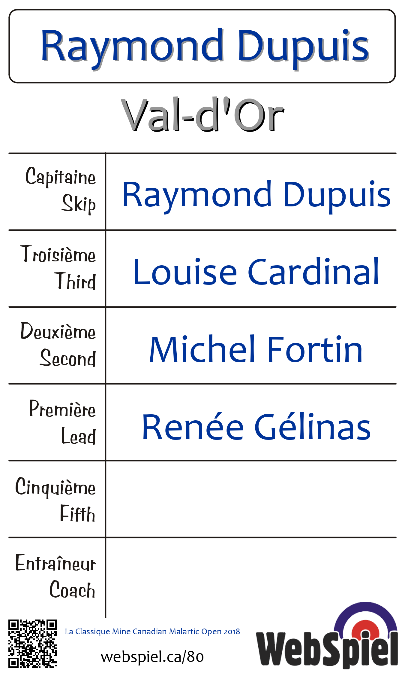 Sunday, February 4th, 2018, at 10:00am EST Club de curling du Belvédère, Sheet 4 · D, Winner › D08, Loser › OUT | |||||||||
