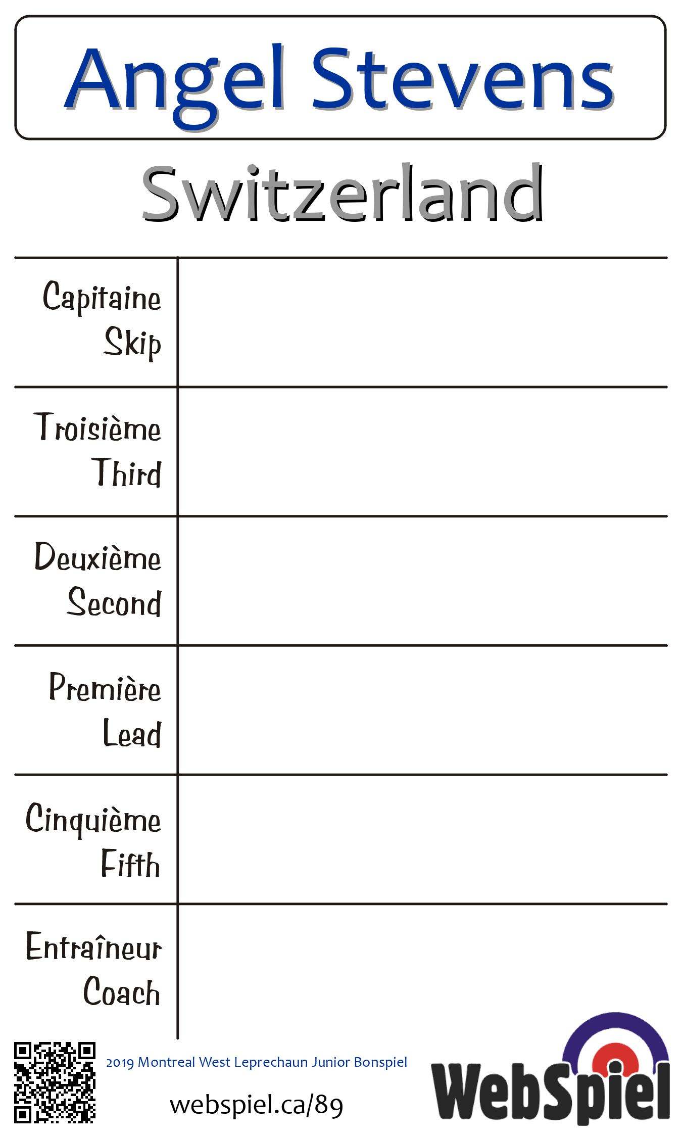 Saturday, January 26th, 2019, at 11:00am EST Montreal West Curling Club, Sheet 74 | |||||||||