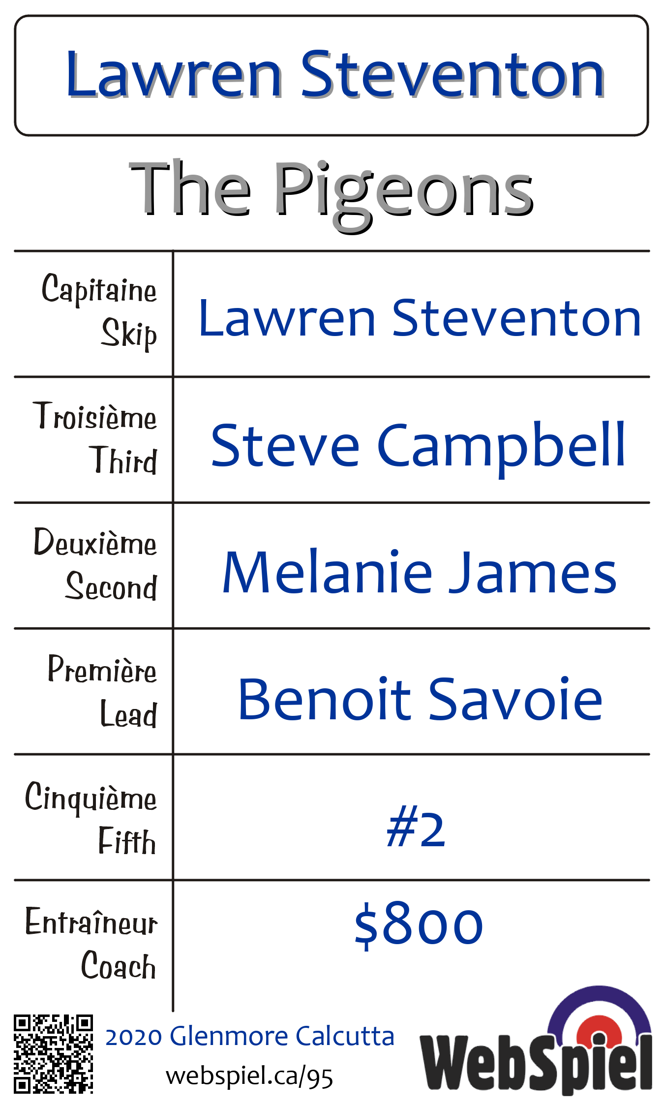 | Skip | Lawren Steventon |