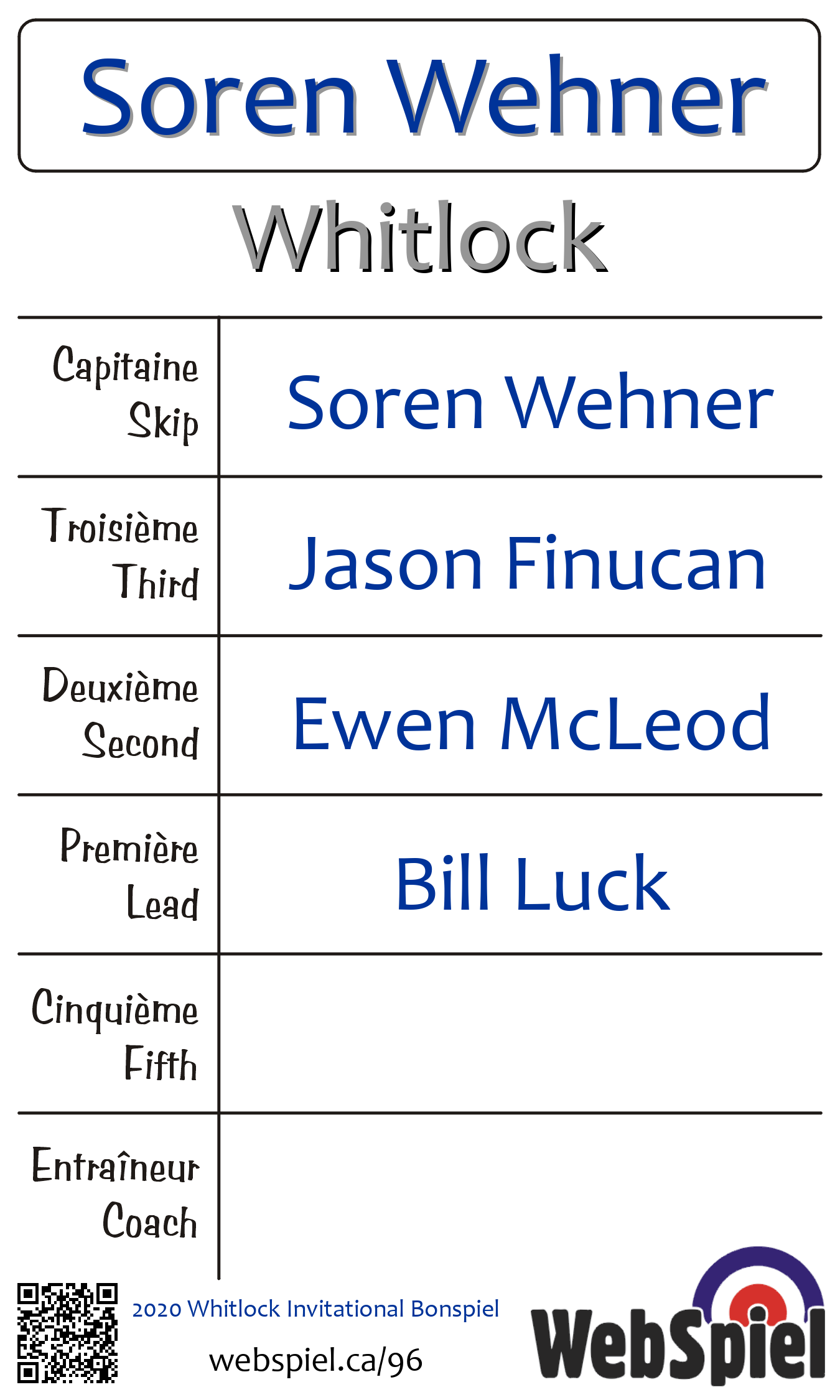Saturday, January 11th, 2020, at 8:00am EST Club de curling Hudson Whitlock, Sheet 1, Winner › C09, Loser › OUT | |||||||||