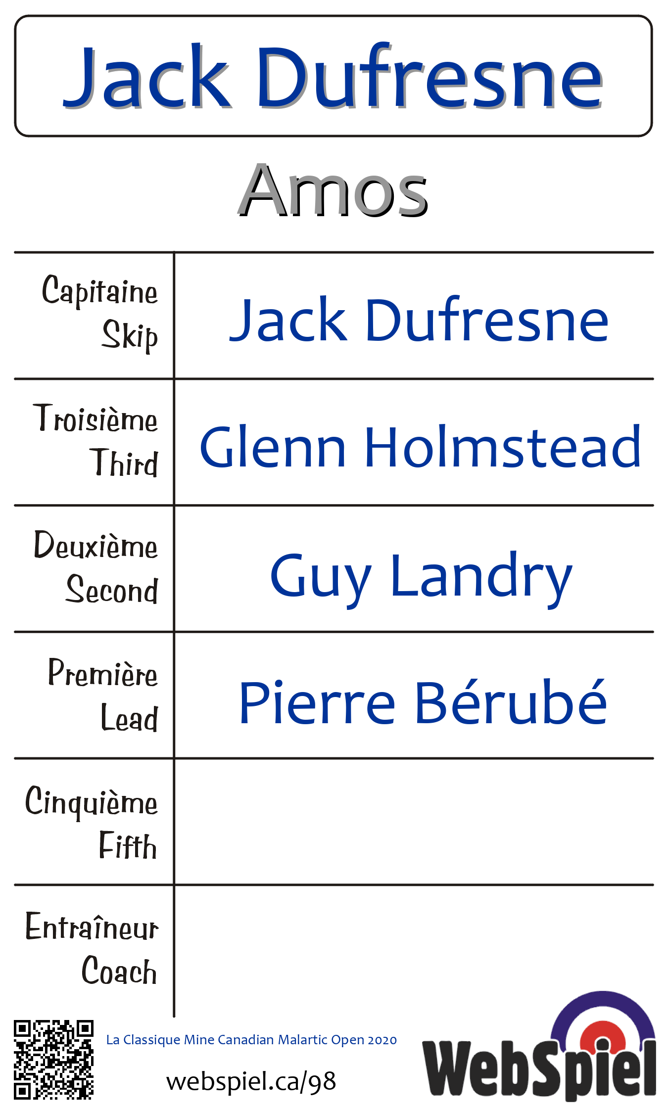 | Skip | Jack Dufresne |