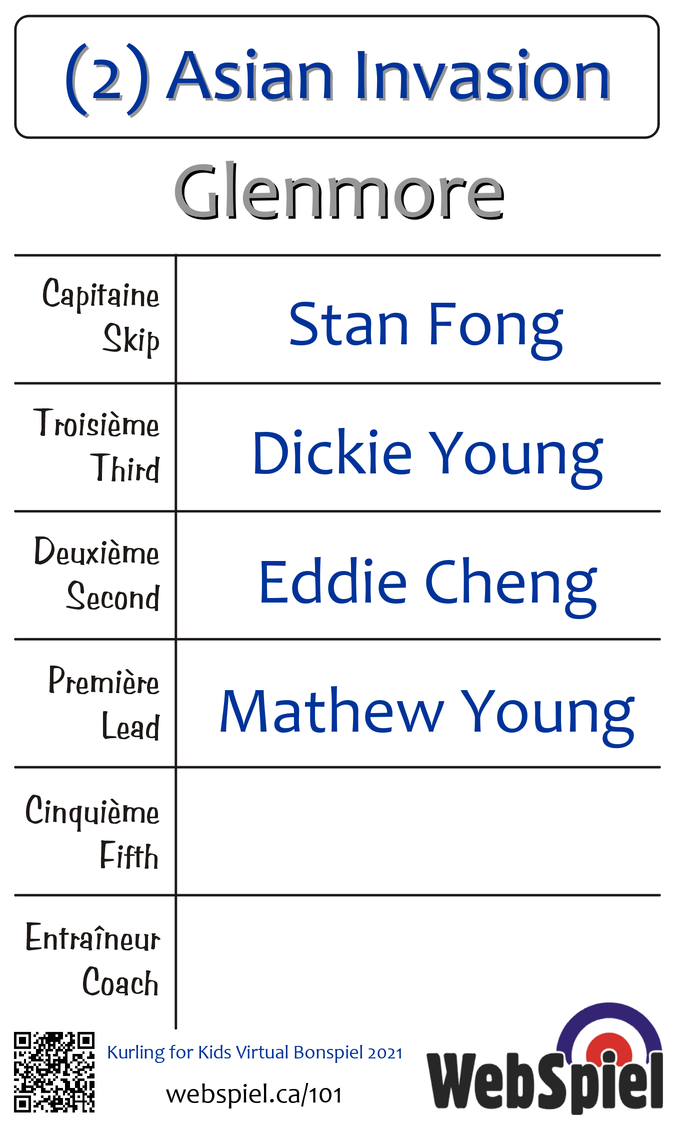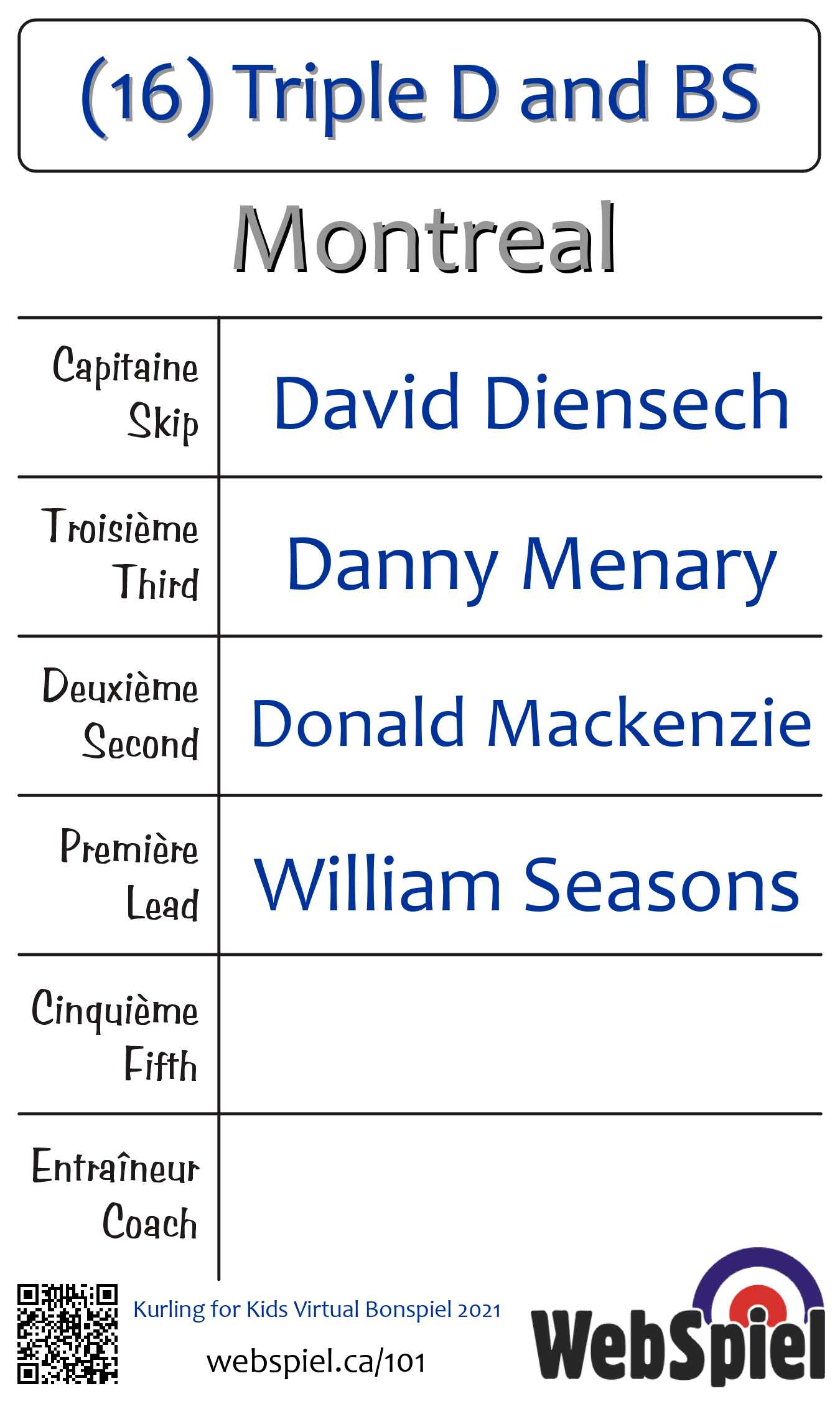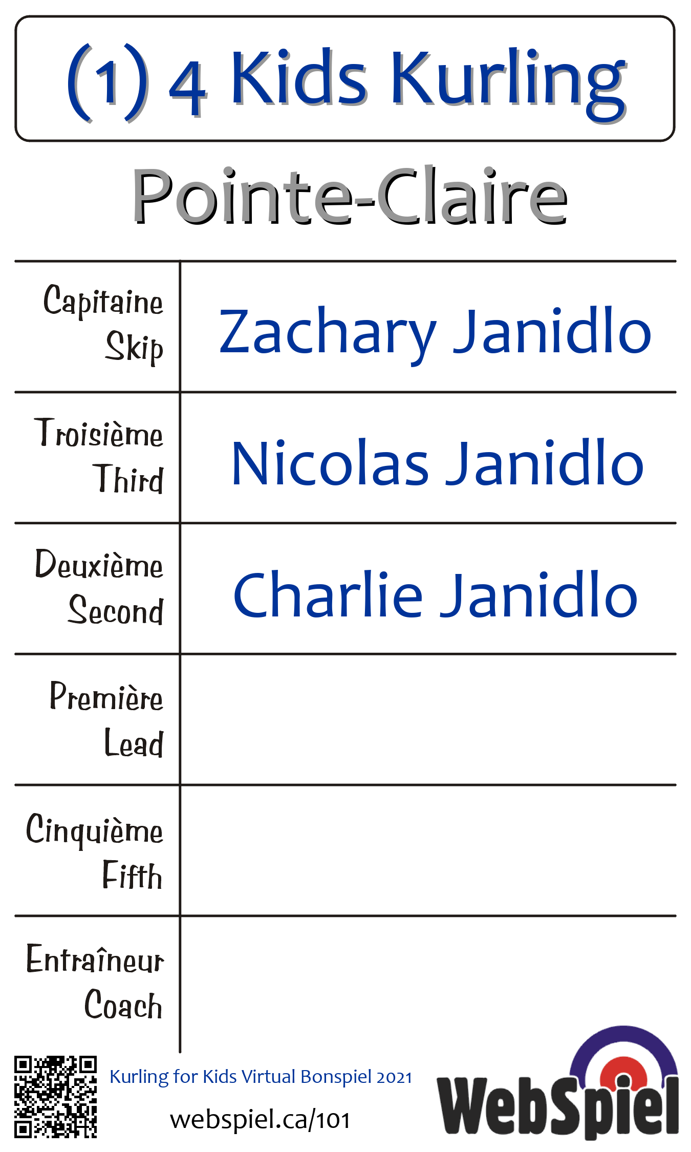 | 1 | (1) 4 Kids Kurling | ||