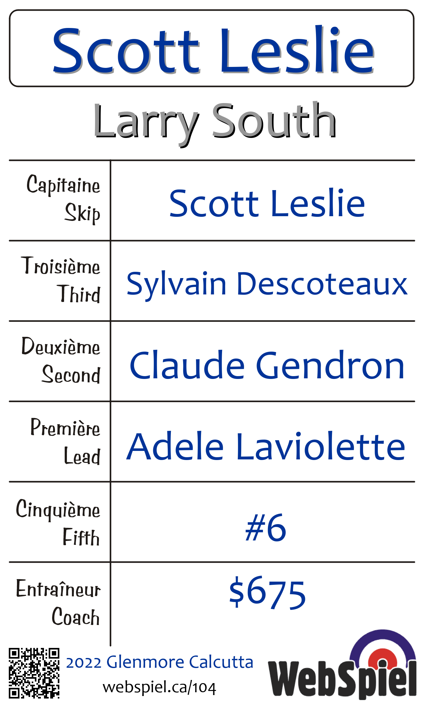 | Équipe | 16 - Scott Leslie |