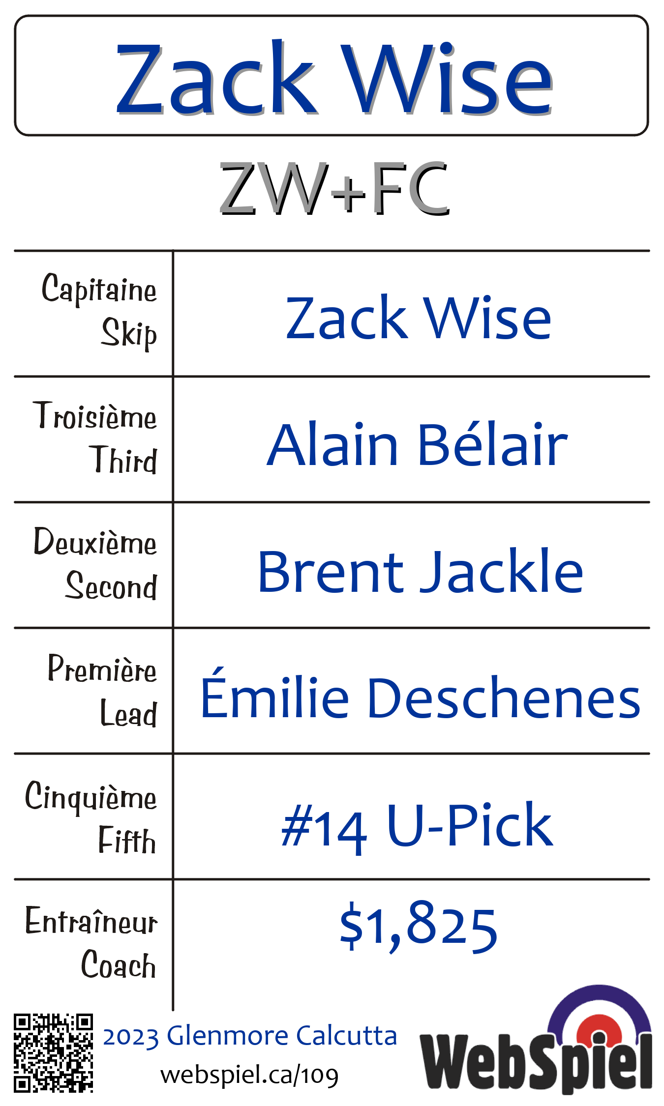 Vendredi le 3 février 2023, à 19h00 EST Glenmore Curling Club, Glace 211 · A, Gagnant › D13, Perdant › Éliminé | |||||||||