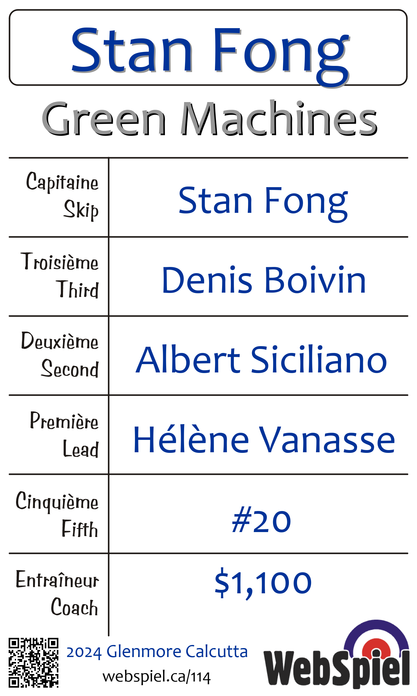 | Club | Green Machines Glenmore Curling Club 120 rue Glenmore Dollard-des-Ormeaux, QC H9B 2X9 CANADA T: 514-684-6350 F: 514-684-6352 http://www.glenmorecurling.com 4 glaces |