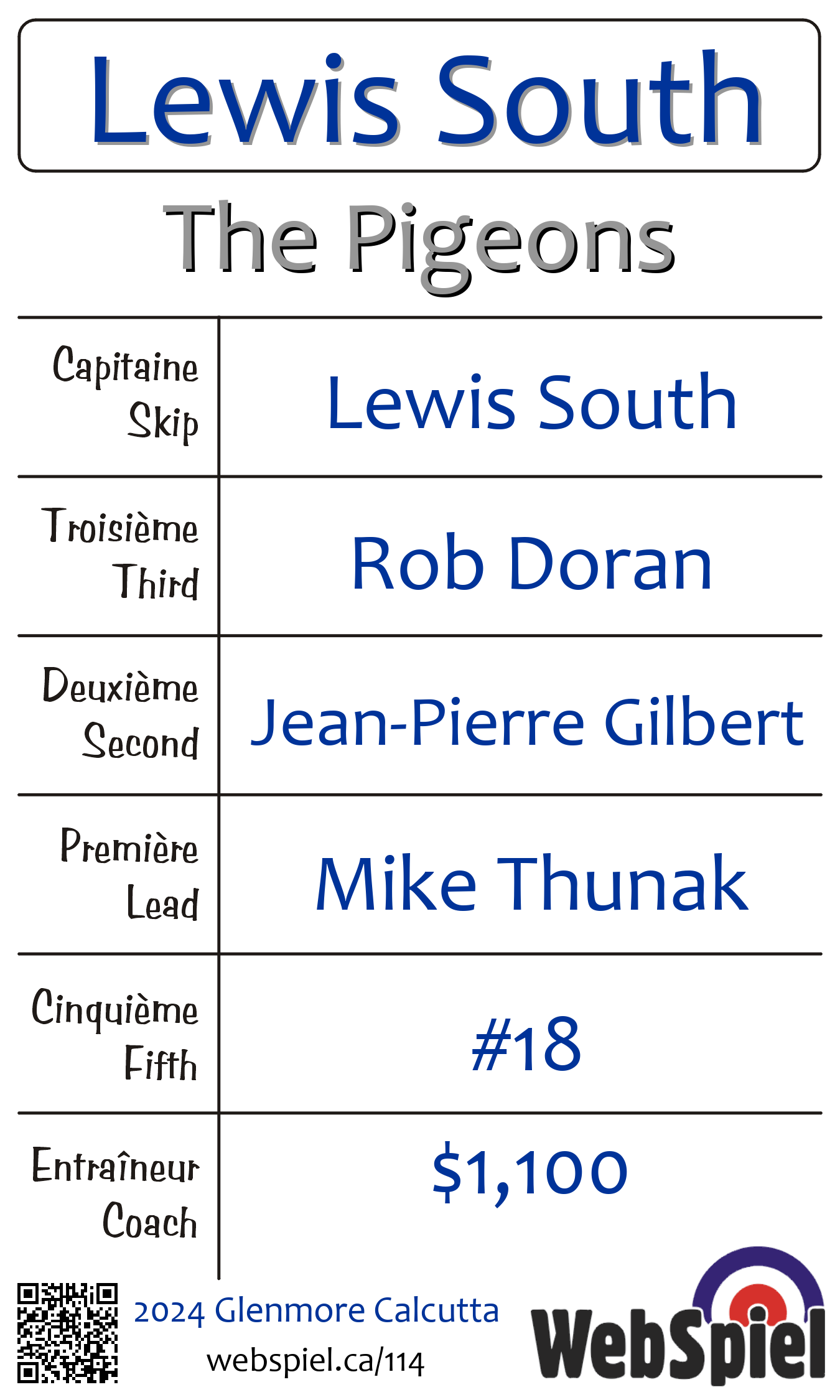 Dimanche le 4 février 2024, à 15h30 EST Glenmore Curling Club, Glace 214 · D, Gagnant › A19, Perdant › C04 | |||||||||