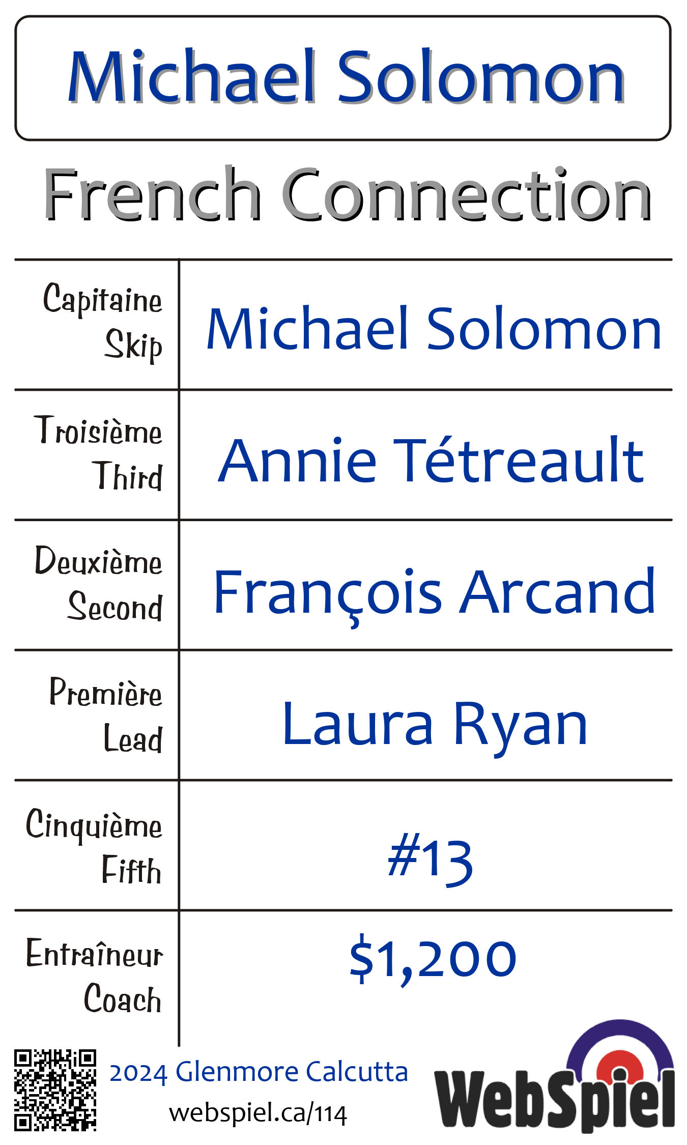 Jeudi le 8 février 2024, à 19h00 EST Glenmore Curling Club, Glace 213 · C, Gagnant › D07, Perdant › Éliminé | ||||||||||
