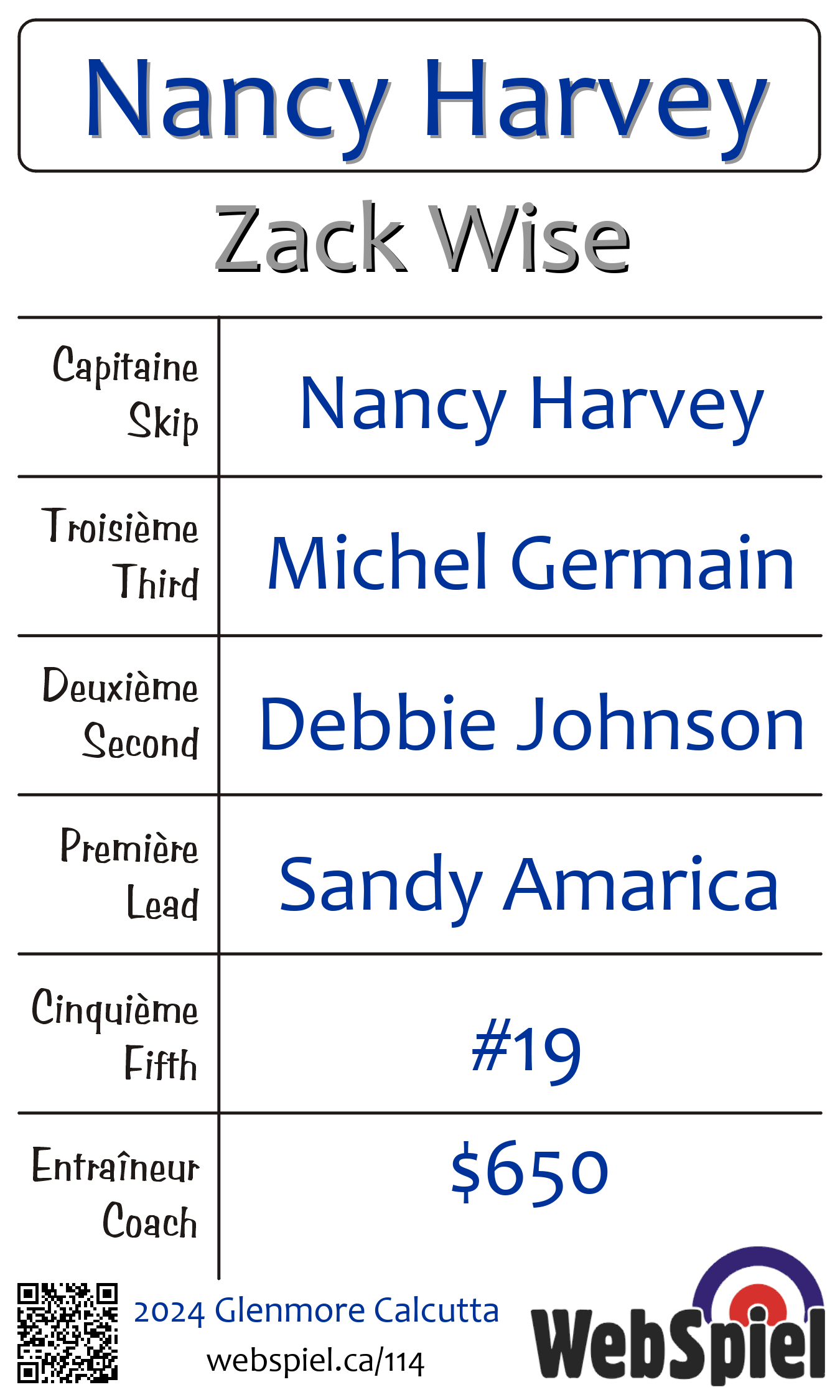 | Équipe | 25 - Nancy Harvey |