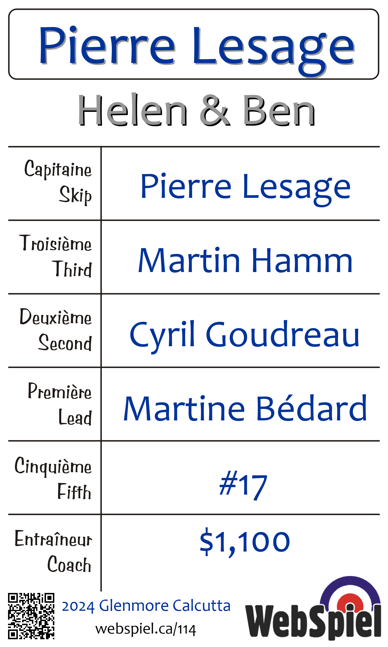 Complété. 2024 Glenmore Calcutta · Draw C10
