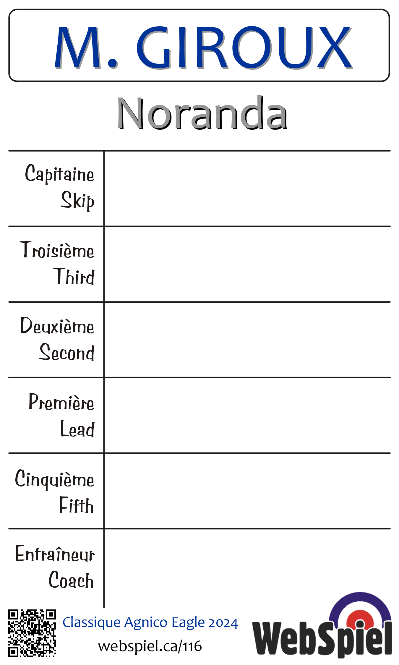 | Club | Noranda Club de curling Noranda 218 av. Murdoch Rouyn-Noranda, QC J9X 1E6 CANADA T: 819-762-7365 http://www.curlingnoranda.ca/ 6 glaces |
