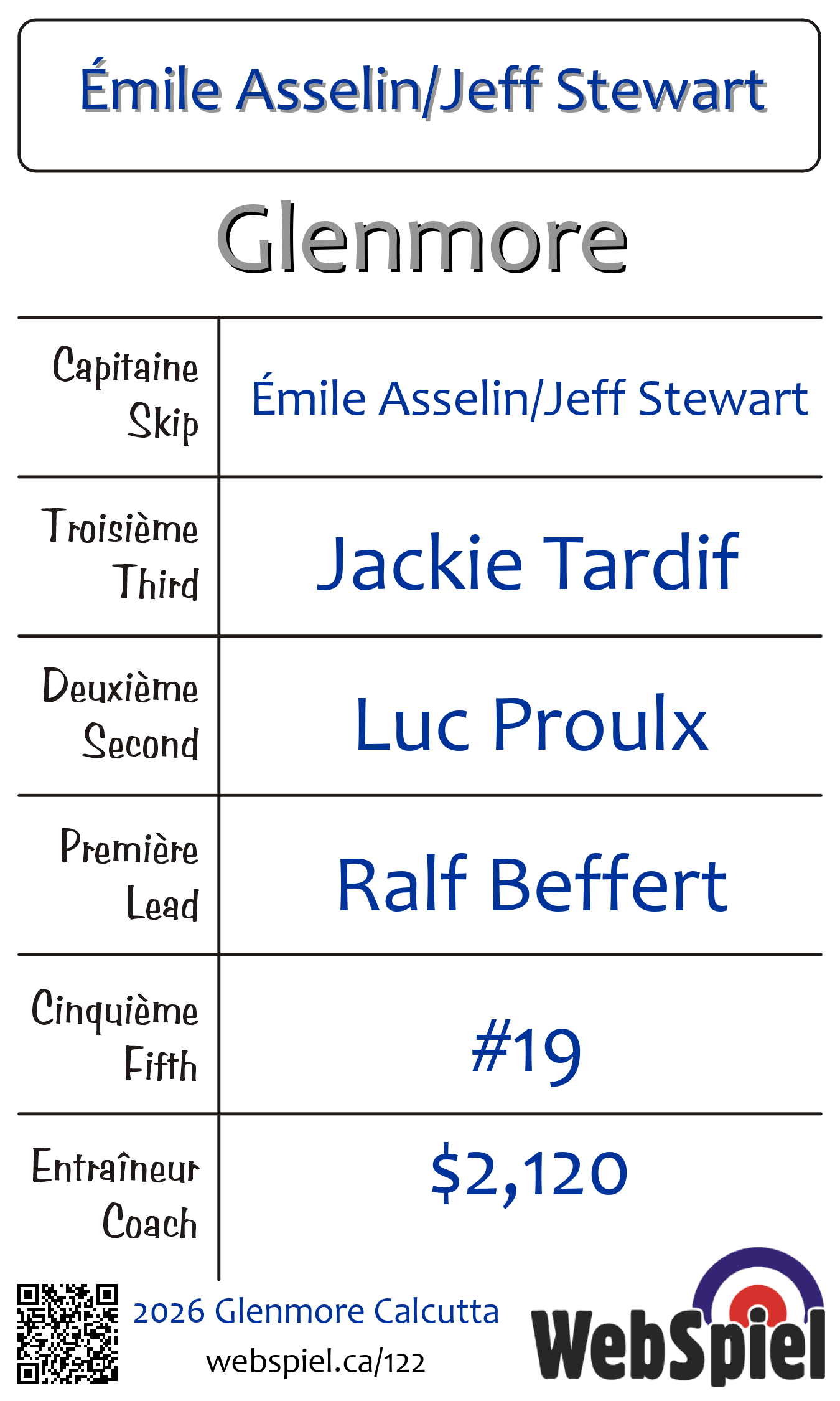 | Équipe | 2 - Émile Asselin/Jeff Stewart |