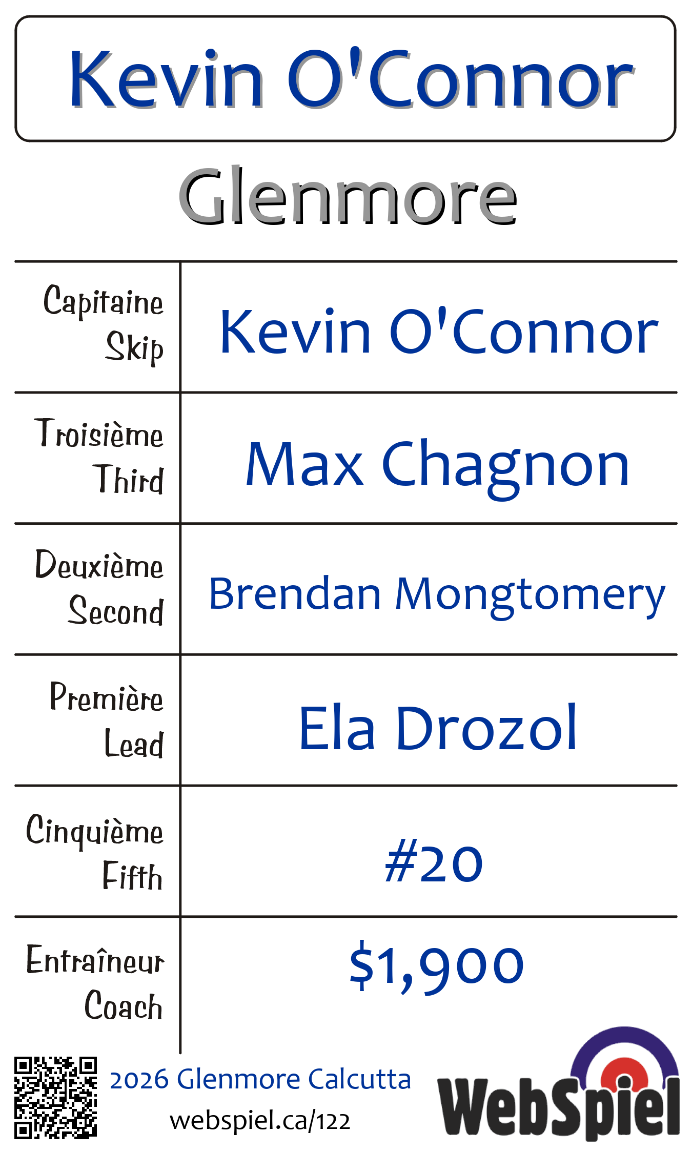 | Équipe | 7 - Kevin O'Connor |