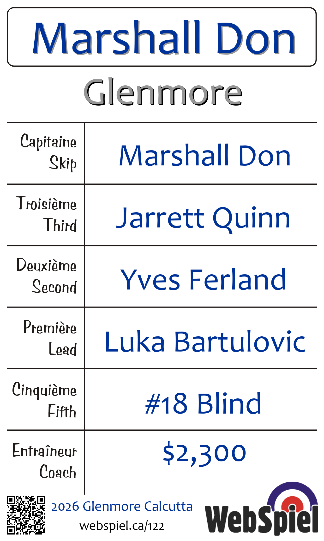 | Équipe | 15 - Marshall Don |