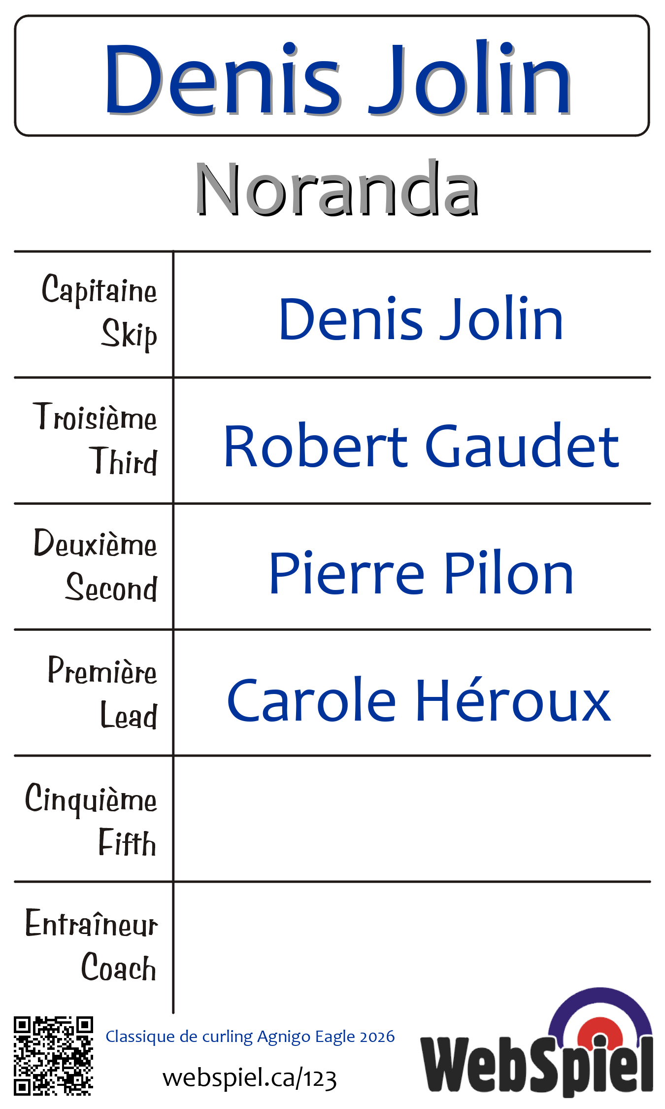 | Club | Noranda Club de curling Noranda 218 av. Murdoch Rouyn-Noranda, QC J9X 1E6 CANADA T: 819-762-7365 http://www.curlingnoranda.ca/ 6 glaces |