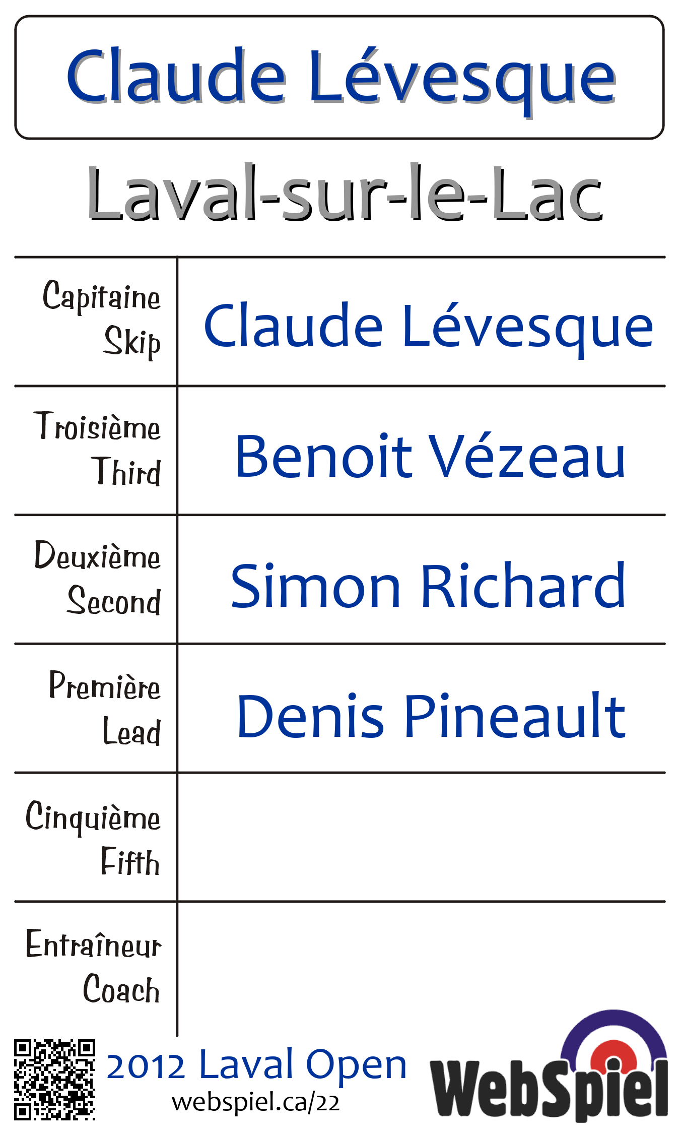 | Équipe | 12 - Claude Lévesque |