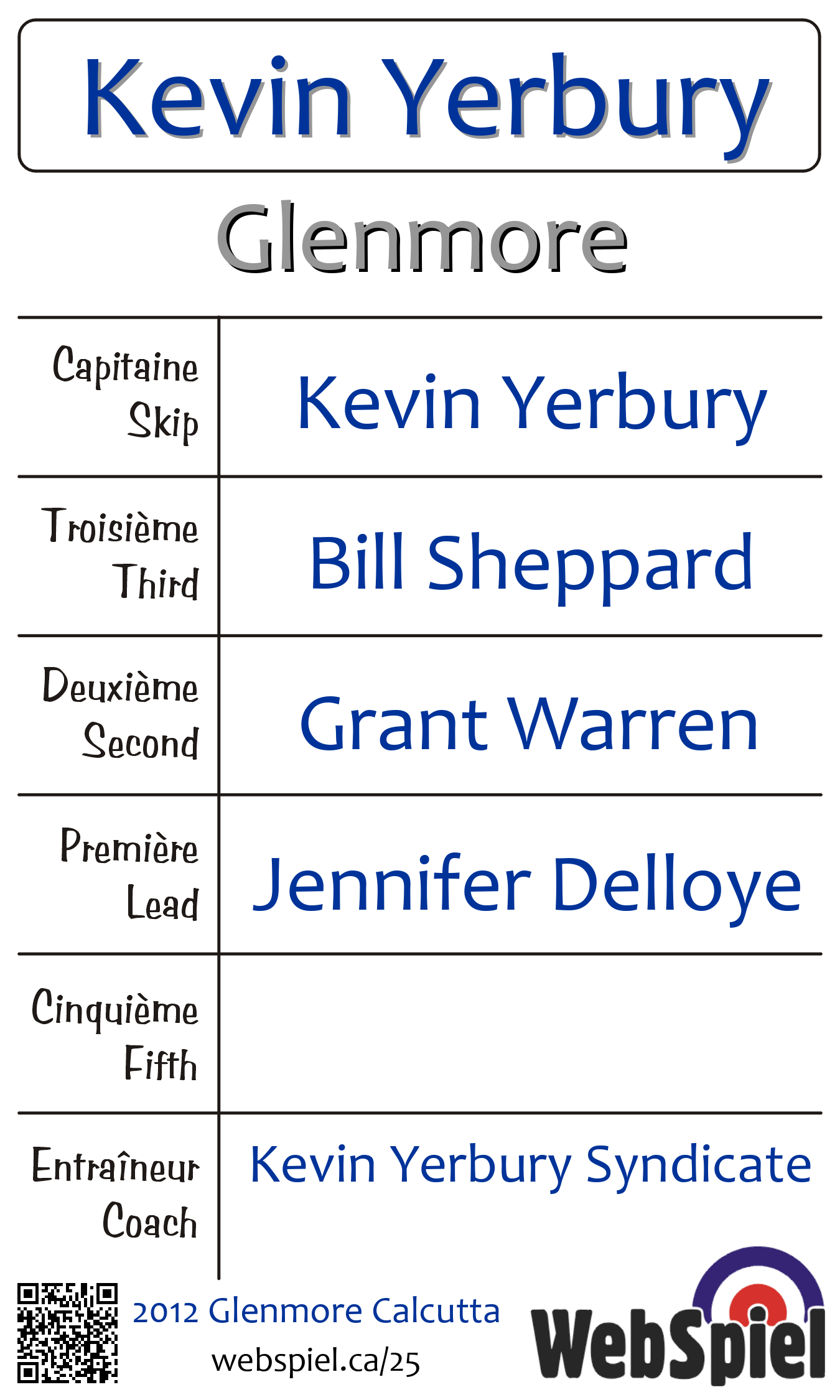 Jeudi le 9 février 2012, à 19h00 EST Glenmore Curling Club, Glace 213, Gagnant › A15, Perdant › B08 | |||||||||