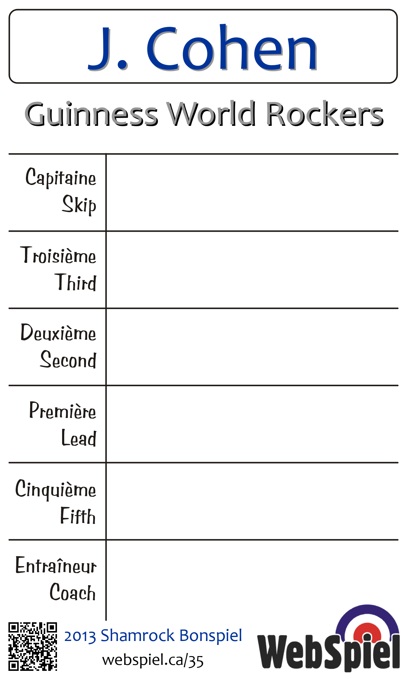 | Club | Guinness World Rockers Montreal West Curling Club 17 Ainslie Road Montréal ouest, QC H4X 1K4 CANADA T: 514-486-5831 http://mtlwestcurl.org/ 4 glaces |