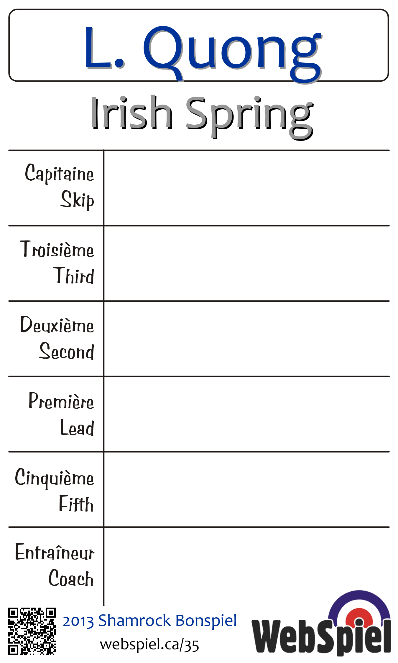 | Club | Irish Spring Montreal West Curling Club 17 Ainslie Road Montréal ouest, QC H4X 1K4 CANADA T: 514-486-5831 http://mtlwestcurl.org/ 4 glaces |