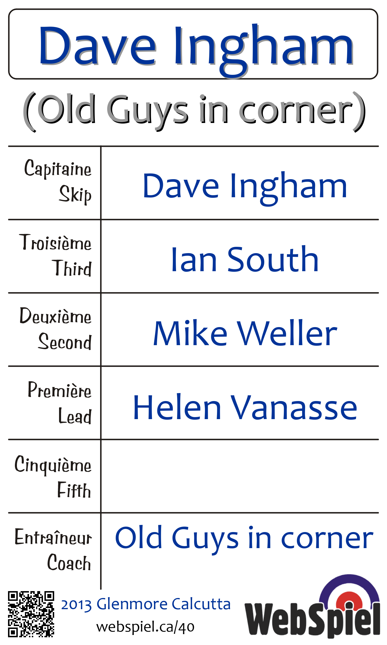 | Entraîneur | Old Guys in corner |