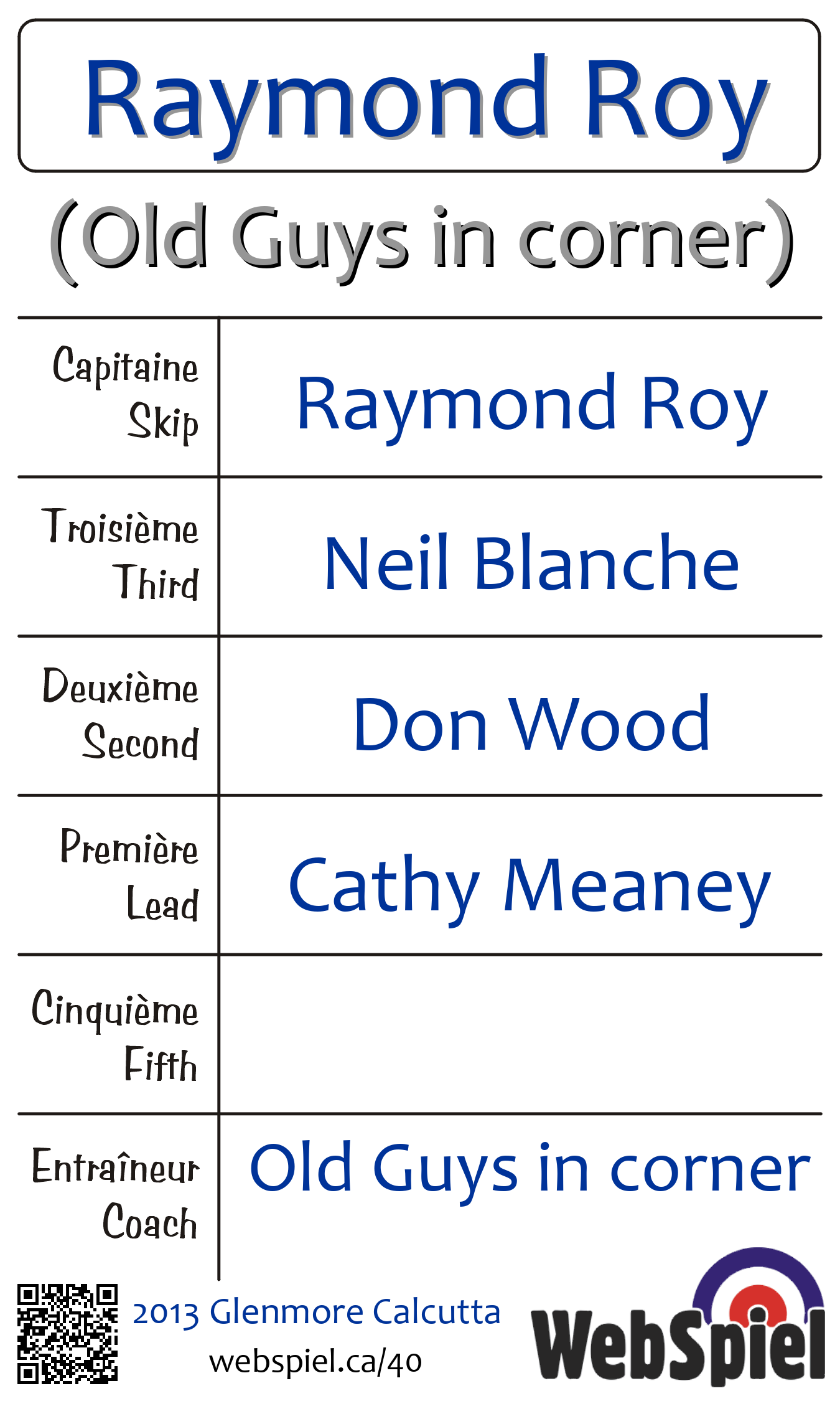 | Entraîneur | Old Guys in corner |