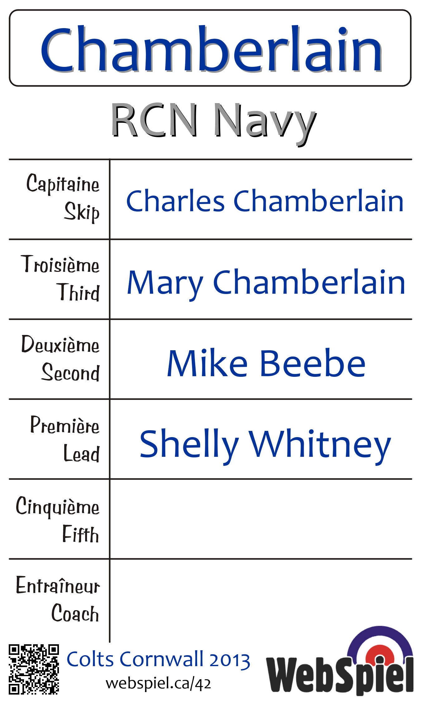 | Club | RCN Navy RCN (Navy) Curling Club Box 3035 Stn. "C" 41 Navy Private Ottawa, ON K1Y 4J3 CANADA T: 613-236-5103 F: 613-236-2913 mailto:navycc@ottawa.com |