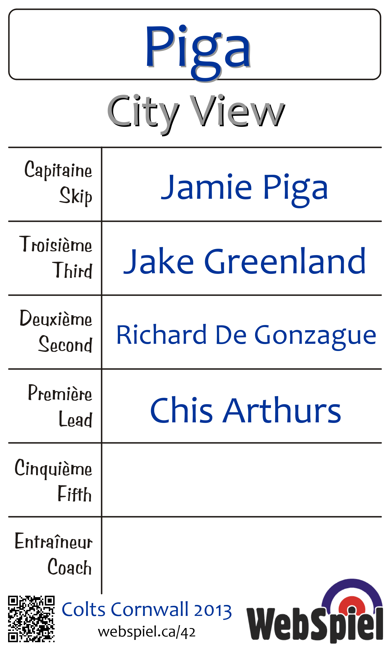 | Club | City View City View Curling Club 50 Capilano Drive Nepean, ON K2E 6G4 CANADA T: 613-224-1737 F: 613-224-1737 http://www.cityviewcurling.ca/ 3 glaces |