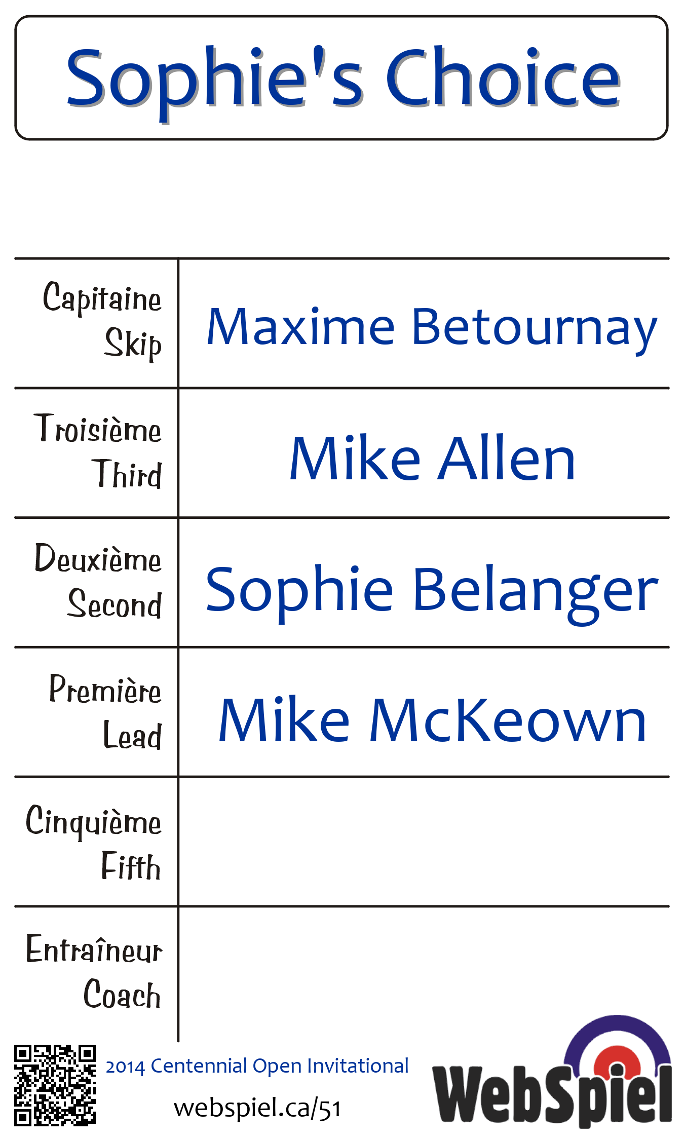 Samedi le 1 mars 2014, à 13h30 EST Montreal West Curling Club, Glace 74, Gagnant › C03, Perdant › D01 | |||||||||