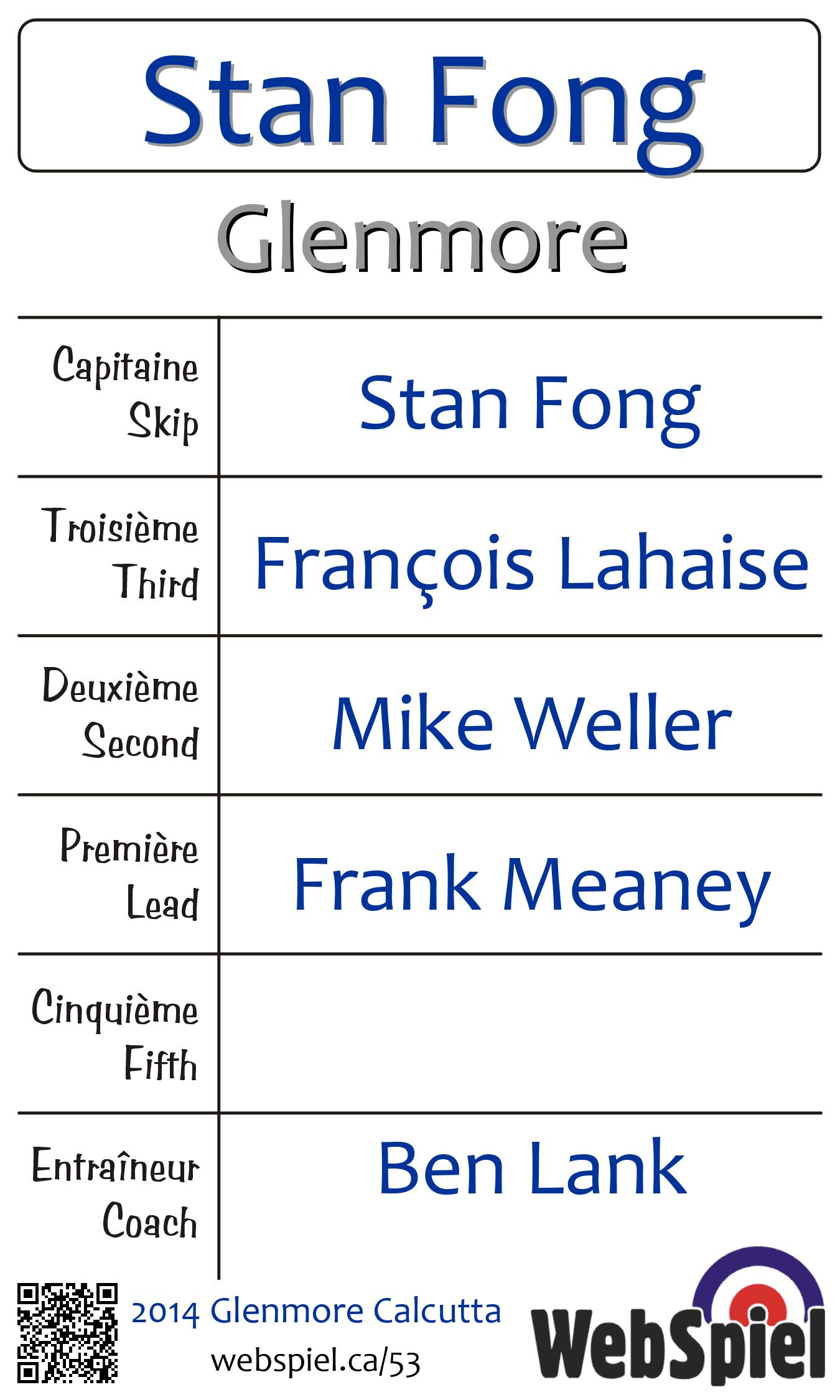 Lundi le 24 février 2014, à 19h00 EST Glenmore Curling Club, Glace 214, Gagnant › A12, Perdant › B04 | |||||||||