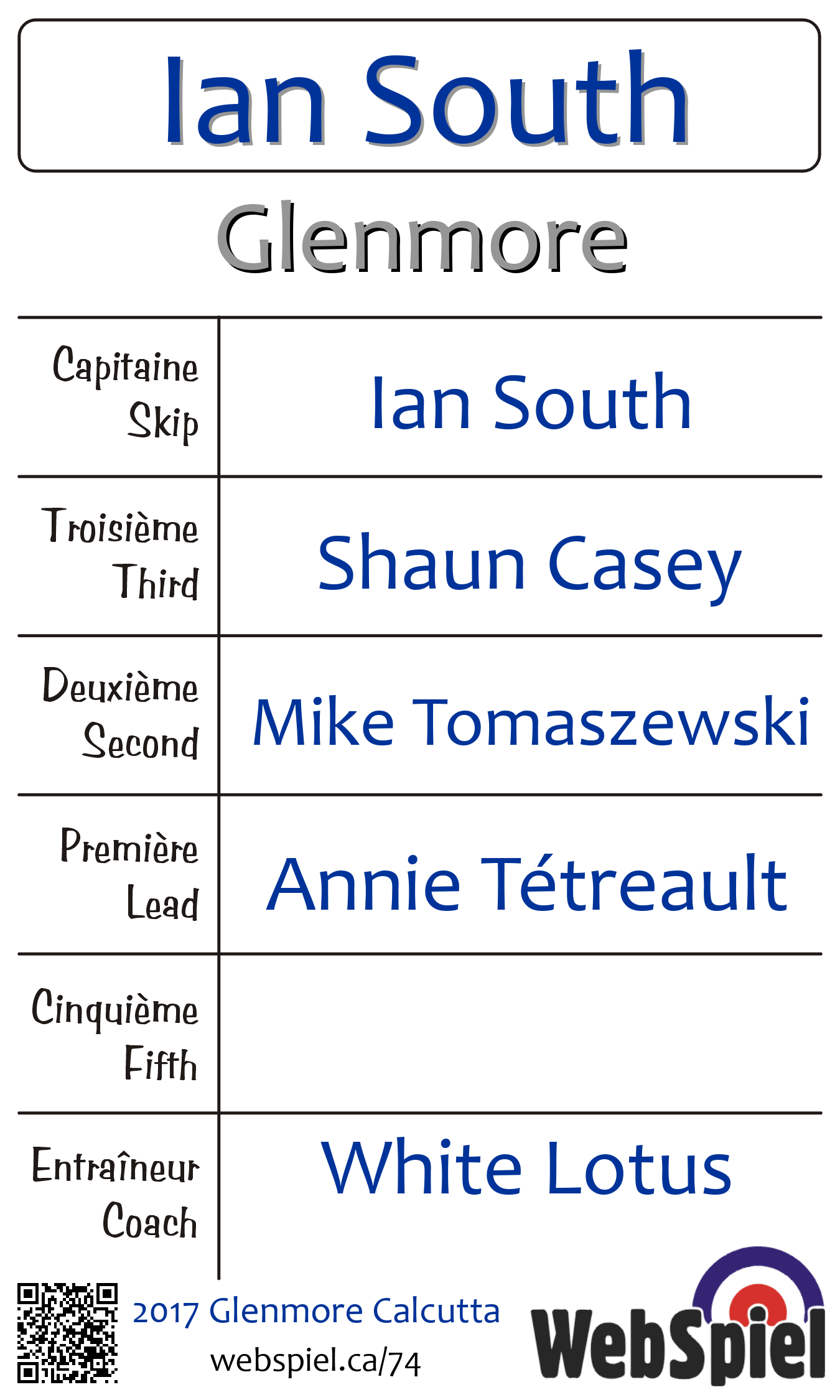 | Équipe | 5 - Ian South |