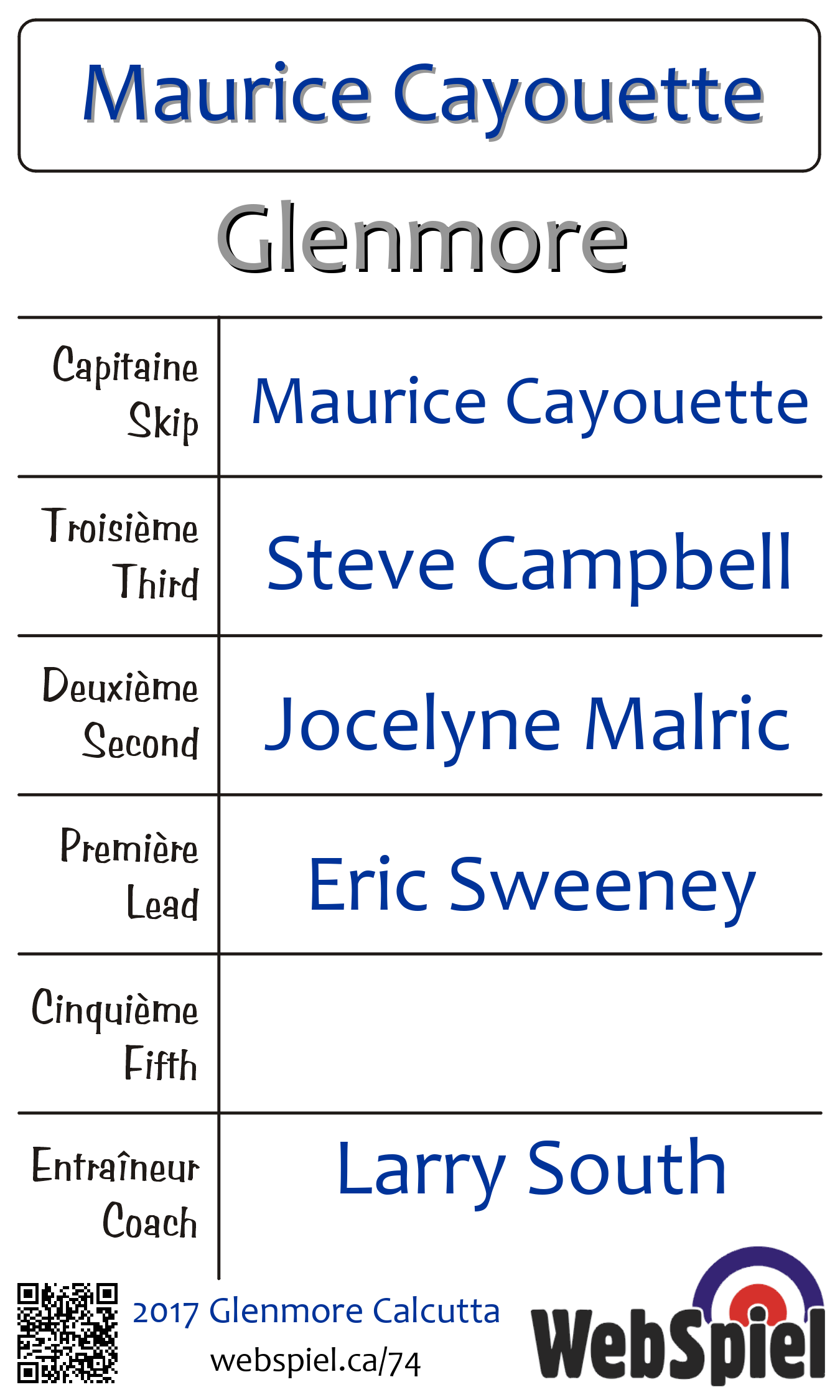 | Club | Glenmore Glenmore Curling Club 120 rue Glenmore Dollard-des-Ormeaux, QC H9B 2X9 CANADA T: 514-684-6350 F: 514-684-6352 http://www.glenmorecurling.com 4 glaces |