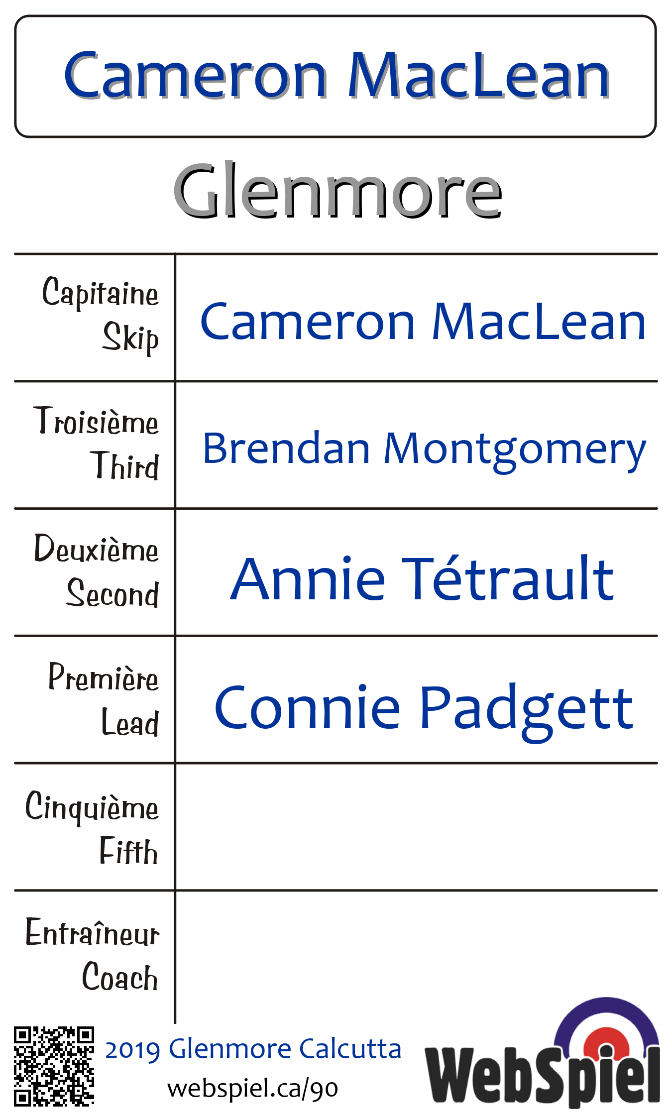 Mardi le 5 février 2019, à 19h00 EST Glenmore Curling Club, Glace 214, Gagnant › A10, Perdant › B02 | |||||||||